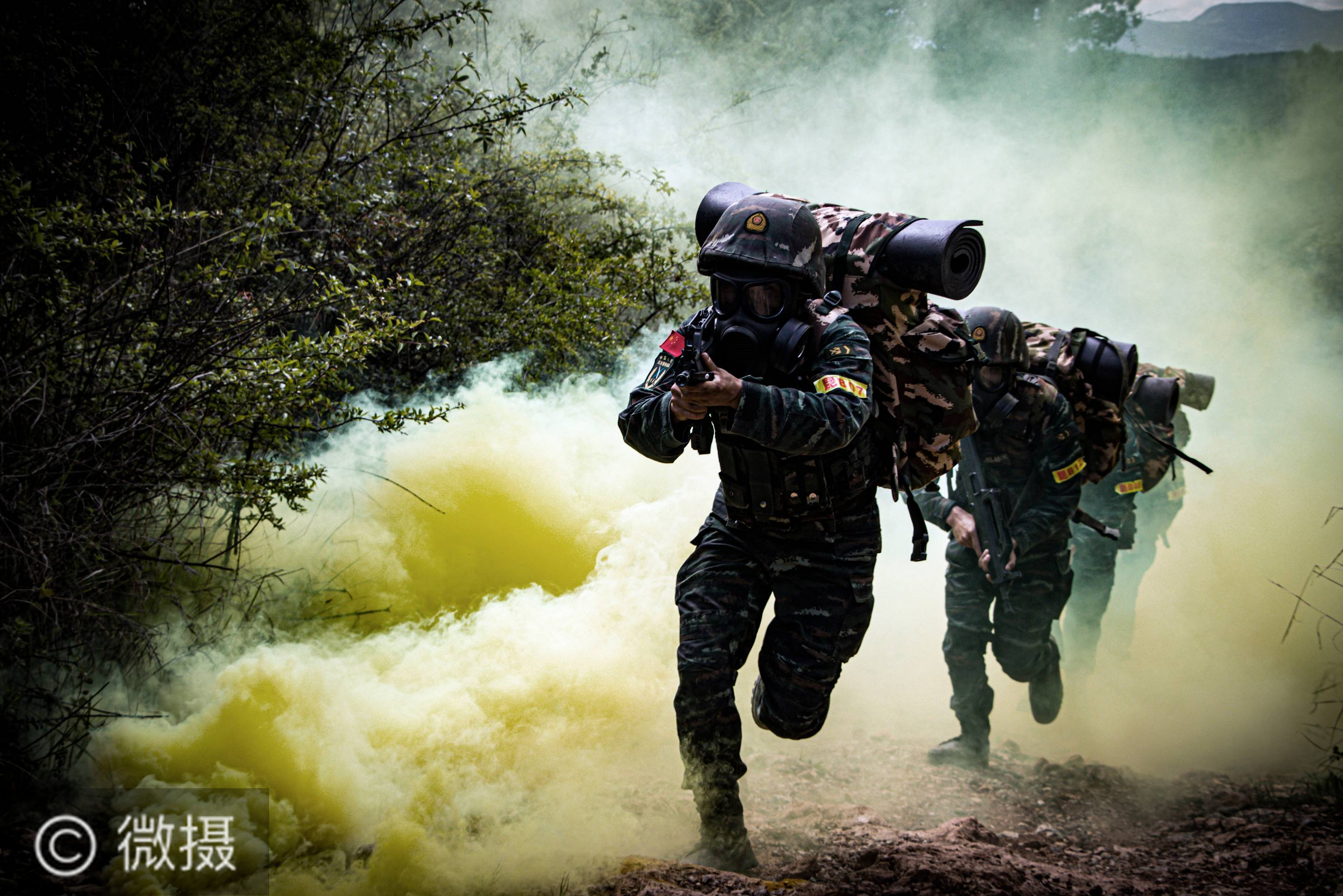 炎炎夏日,一群橄榄绿身着“战甲”,与烈日为伴,不断挑战极限,锻造过硬本领。连日来,武警部队“魔鬼周”极限训练正在火热进行中,在这场残酷的训练中,官兵们都经历了什么?武警云南总队特战队员在野外综合演练课目中快速通过染毒地带(6月21日摄)。新华社发(赵明军 摄)