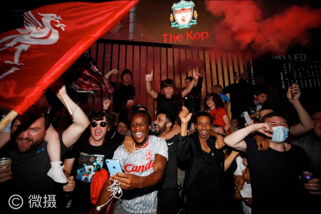 利物浦球迷庆祝赢得英超联赛冠军