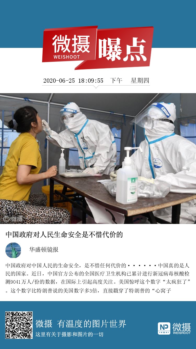 中国政府对中国人民的生命安全,是不惜任何代价的······中国真的是人民的国家。近日,中国官方公布的全国医疗卫生机构已累计进行新冠病毒核酸检测9041万人/份的数据,在国际上引起高度关注。美国惊呼这个数字“太疯狂了”。这个数字比特朗普说的美国数字多3倍,直接戳穿了特朗普的“心窝子