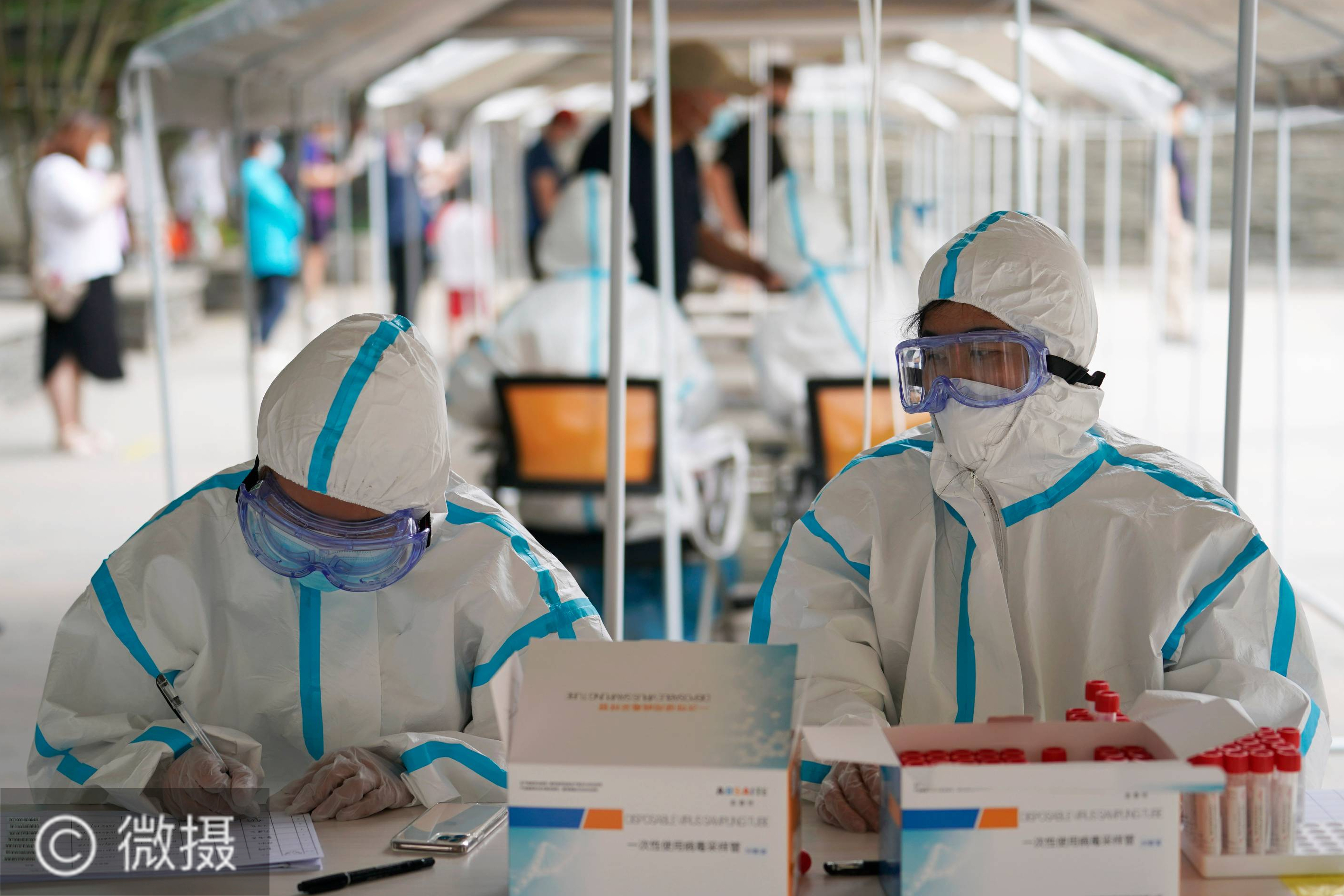6月24日,中国中医科学院广安门医院的医务人员在北京市西城区手帕口南街核酸检测集中采样点工作。大规模的核酸检测是应对新冠肺炎疫情中进行病例筛查、做到“早发现”的主要手段。为此,北京市稳步提升全市核酸检测能力,日核酸检测能力已由4万份提升至30万份以上。新华社记者 邢广利 摄