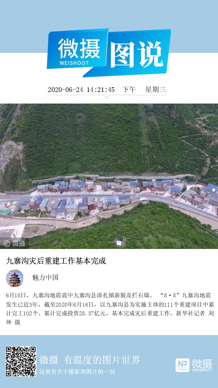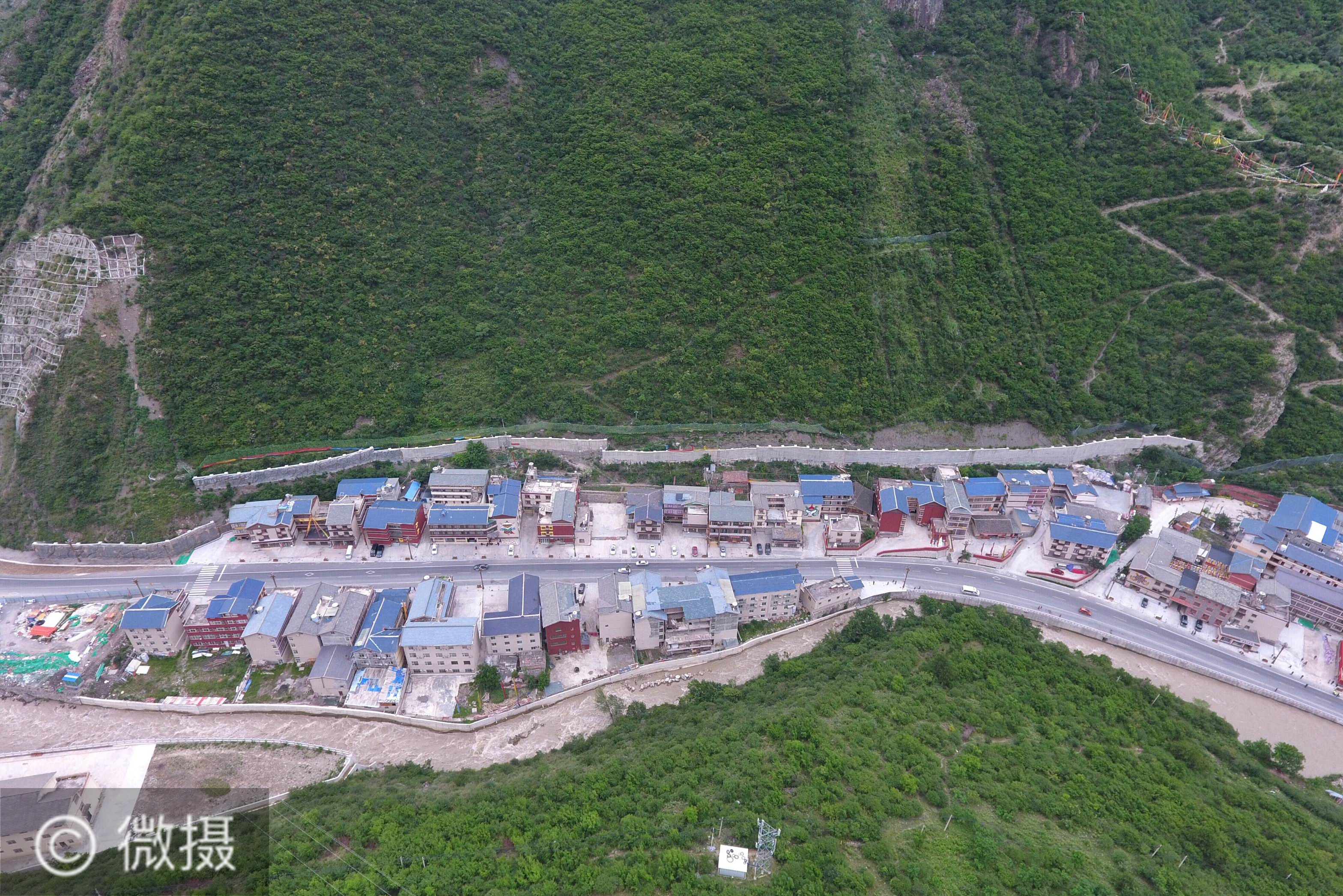 6月18日,九寨沟地震震中九寨沟县漳扎镇新貌及拦石墙。 “8·8”九寨沟地震发生已近3年,截至2020年6月16日,以九寨沟县为实施主体的111个重建项目中累计完工102个、累计完成投资28.37亿元,基本完成灾后重建工作。新华社记者 刘坤 摄