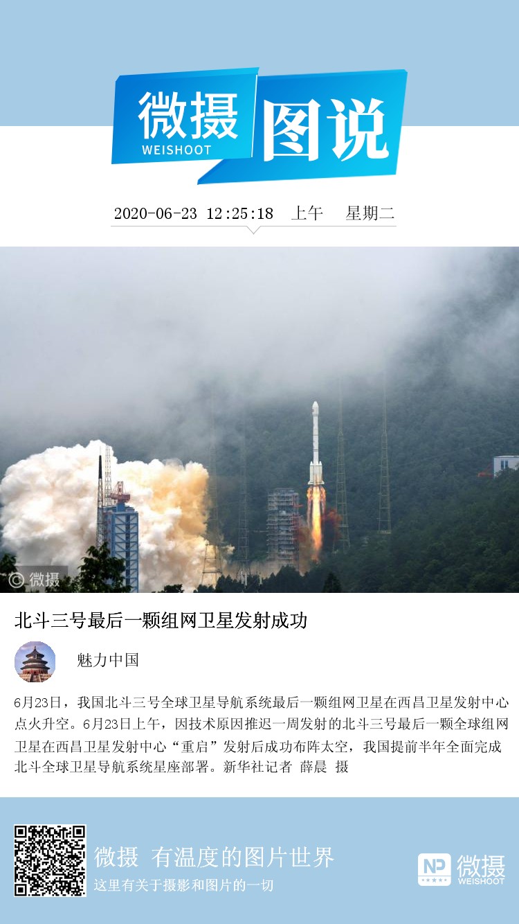 6月23日,我国北斗三号全球卫星导航系统最后一颗组网卫星在西昌卫星发射中心点火升空。6月23日上午,因技术原因推迟一周发射的北斗三号最后一颗全球组网卫星在西昌卫星发射中心“重启”发射后成功布阵太空,我国提前半年全面完成北斗全球卫星导航系统星座部署。新华社记者 薛晨 摄