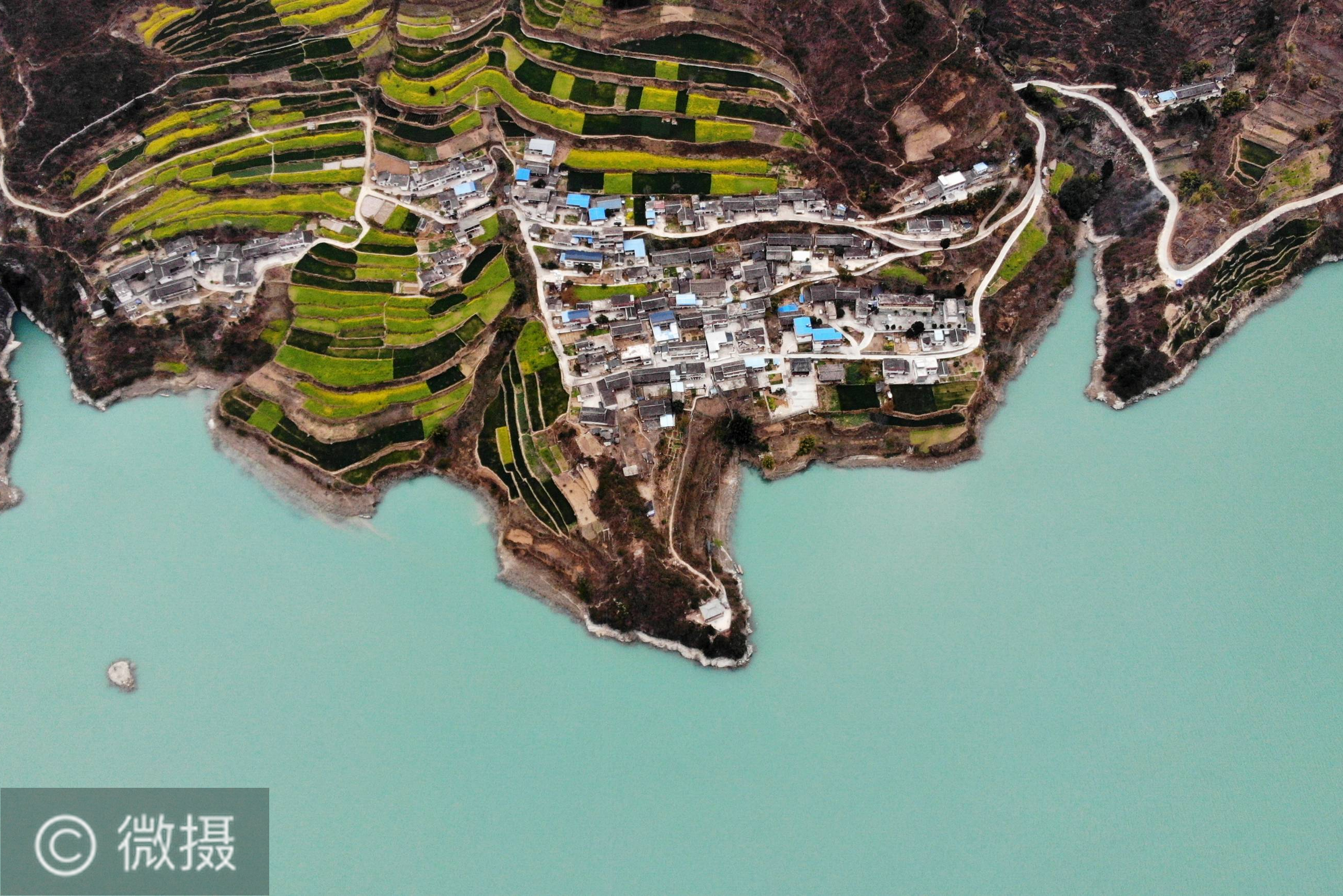 甘肃省陇南市文县白龙江畔山坡上的油菜花田(3月11日摄,无人机照片)。实施乡村振兴战略,是党的十九大作出的重大决策部署。各地践行“绿水青山就是金山银山”理念,在发展农业生产、推动农村经济社会发展的同时,注重保护生态环境,让优美风景成为乡村的美丽资源。新华社记者 陈斌 摄