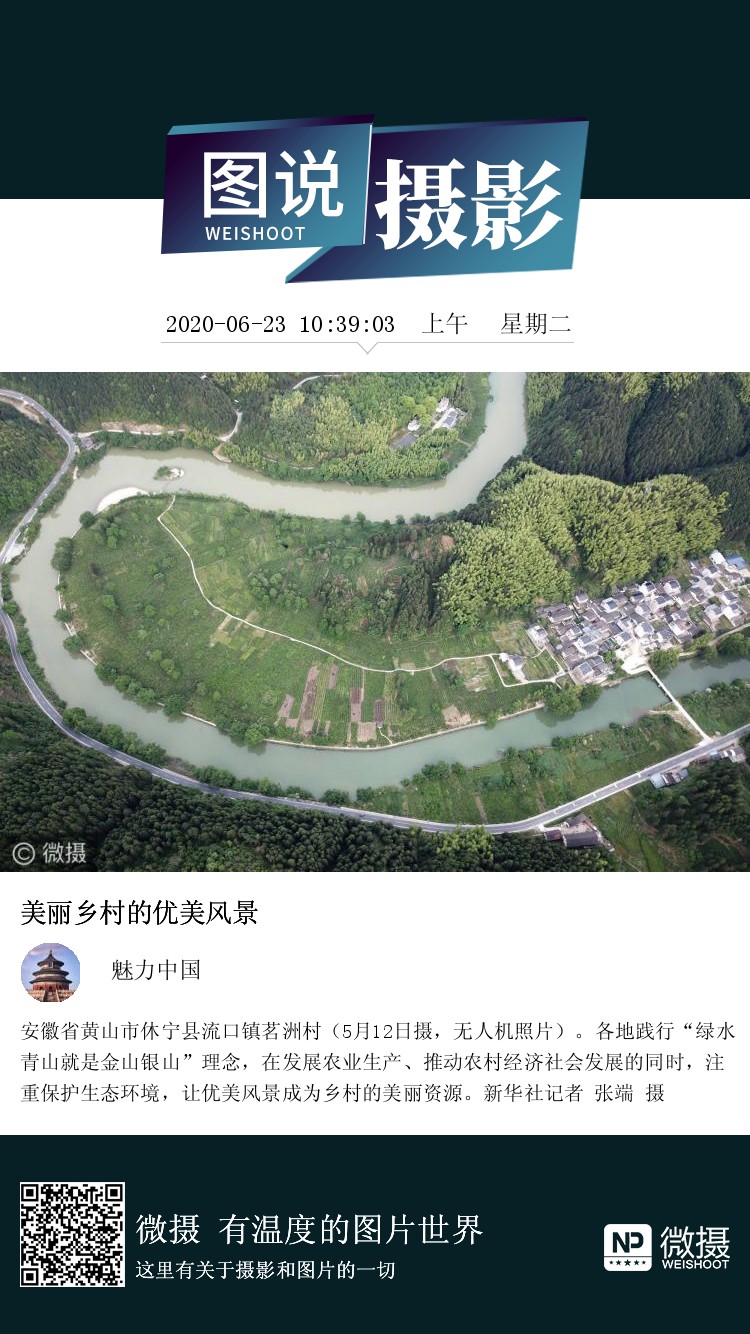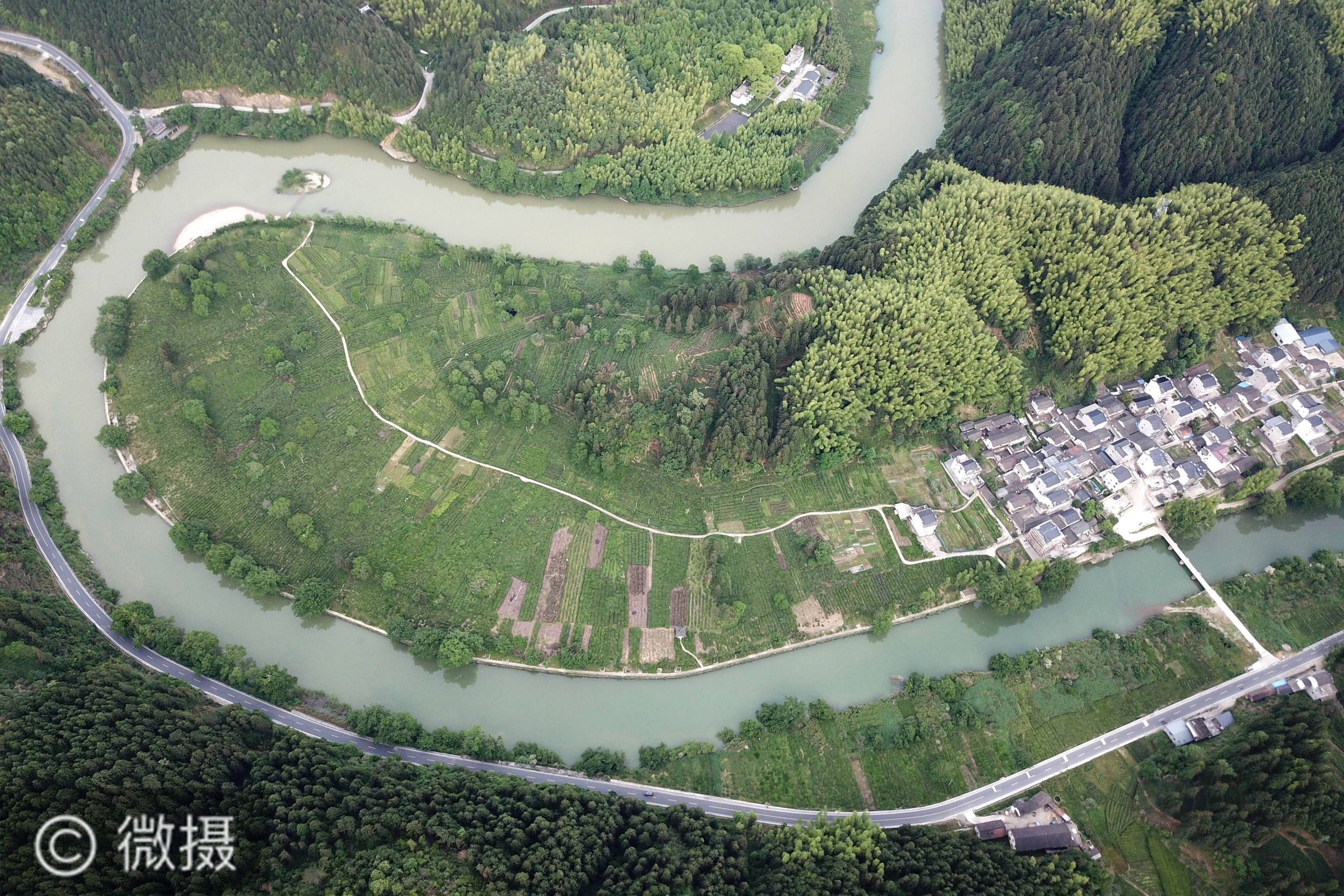 安徽省黄山市休宁县流口镇茗洲村(5月12日摄,无人机照片)。各地践行“绿水青山就是金山银山”理念,在发展农业生产、推动农村经济社会发展的同时,注重保护生态环境,让优美风景成为乡村的美丽资源。新华社记者 张端 摄