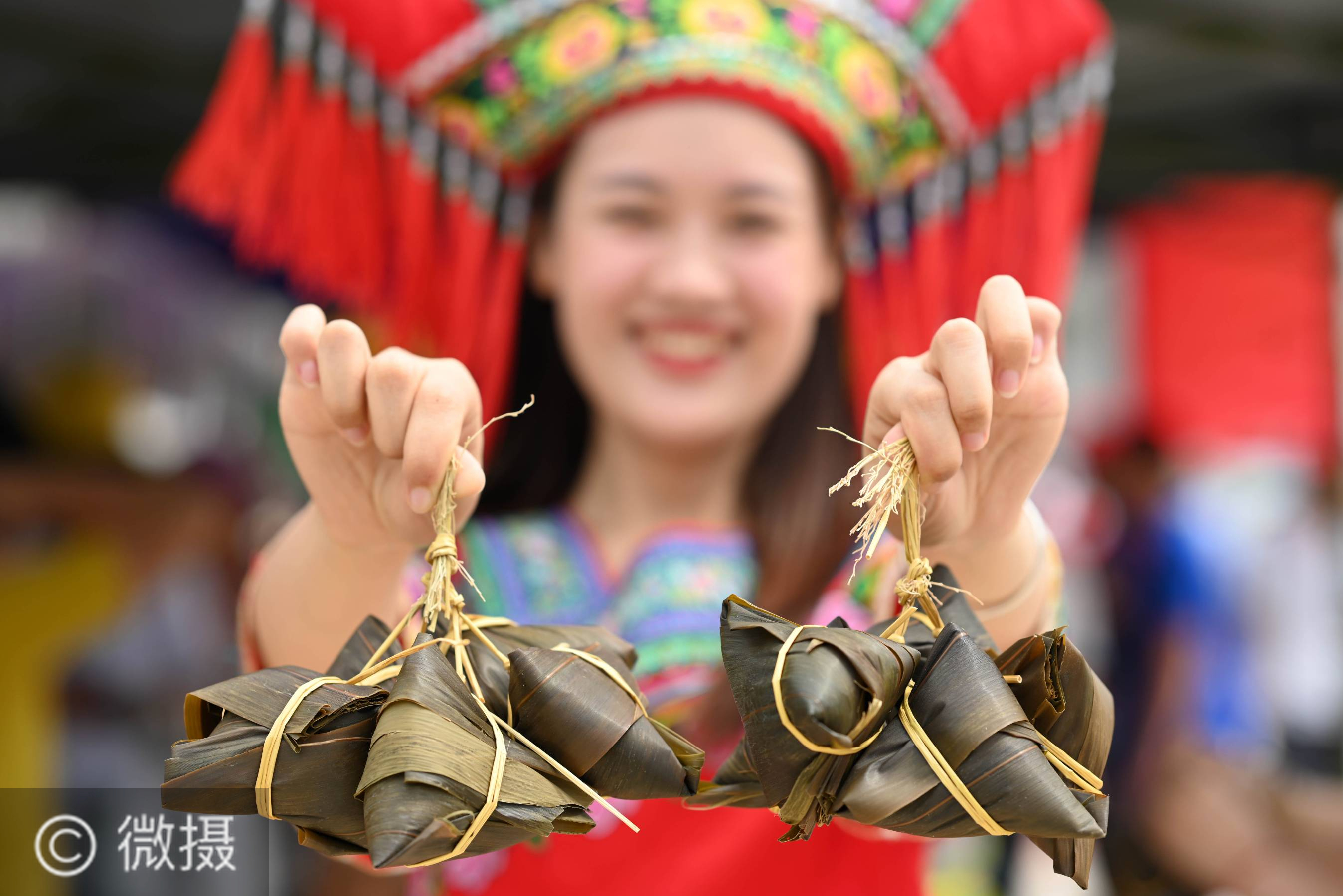 6月22日,在广西柳州市柳江区进德镇泗浪村红花屯,村民展示刚包好的粽子。端午节将至,各地举办包粽子比赛、制作香囊等民俗活动,感受传统节日的魅力。 新华社发(黎寒池 摄)