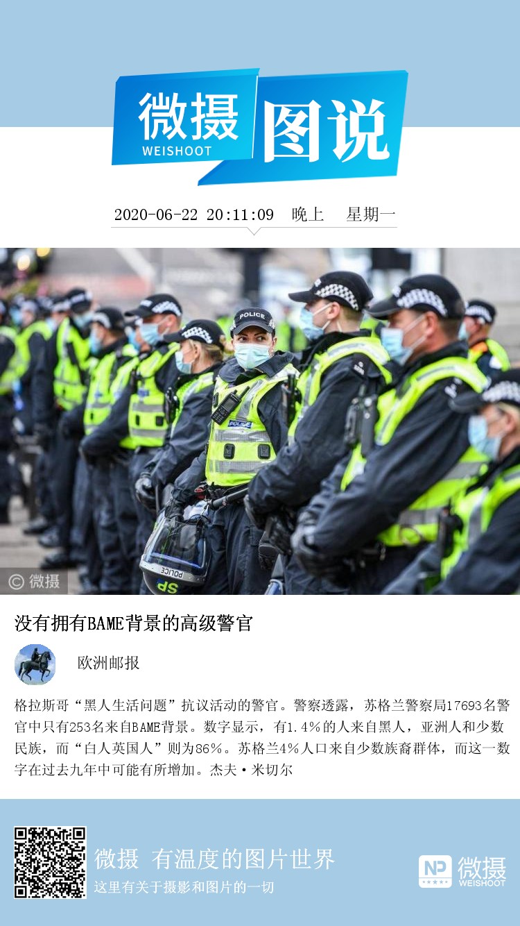 格拉斯哥“黑人生活问题”抗议活动的警官。警察透露,苏格兰警察局17693名警官中只有253名来自BAME背景。数字显示,有1.4%的人来自黑人,亚洲人和少数民族,而“白人英国人”则为86%。苏格兰4%人口来自少数族裔群体,而这一数字在过去九年中可能有所增加。杰夫·米切尔