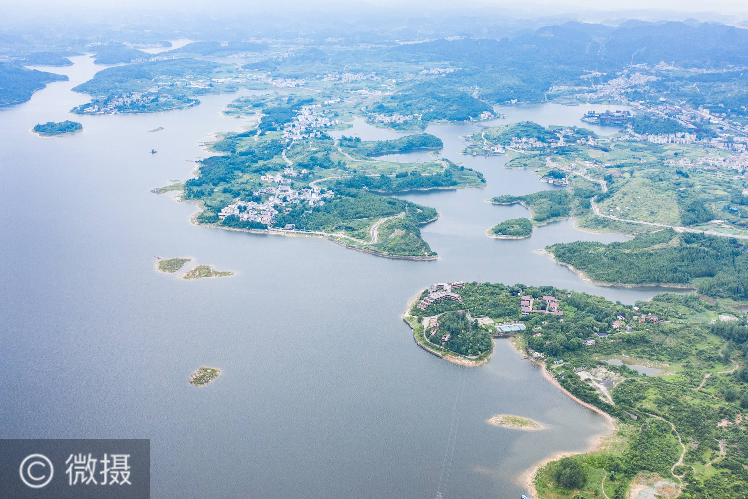 夏至红枫湖。 6月21日,游客乘船在红枫湖景区游览(无人机照片)。夏至时节,贵州省清镇市红枫湖景区草木苍翠,秀丽的湖光山色吸引不少游客前来游玩。新华社记者 陶亮 摄