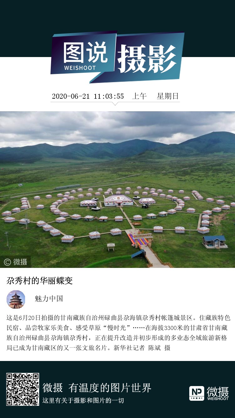 这是6月20日拍摄的甘南藏族自治州碌曲县尕海镇尕秀村帐篷城景区。住藏族特色民宿、品尝牧家乐美食、感受草原“慢时光”……在海拔3300米的甘肃省甘南藏族自治州碌曲县尕海镇尕秀村,正在提升改造并初步形成的多业态全域旅游新格局已成为甘南藏区的又一张文旅名片。新华社记者 陈斌 摄