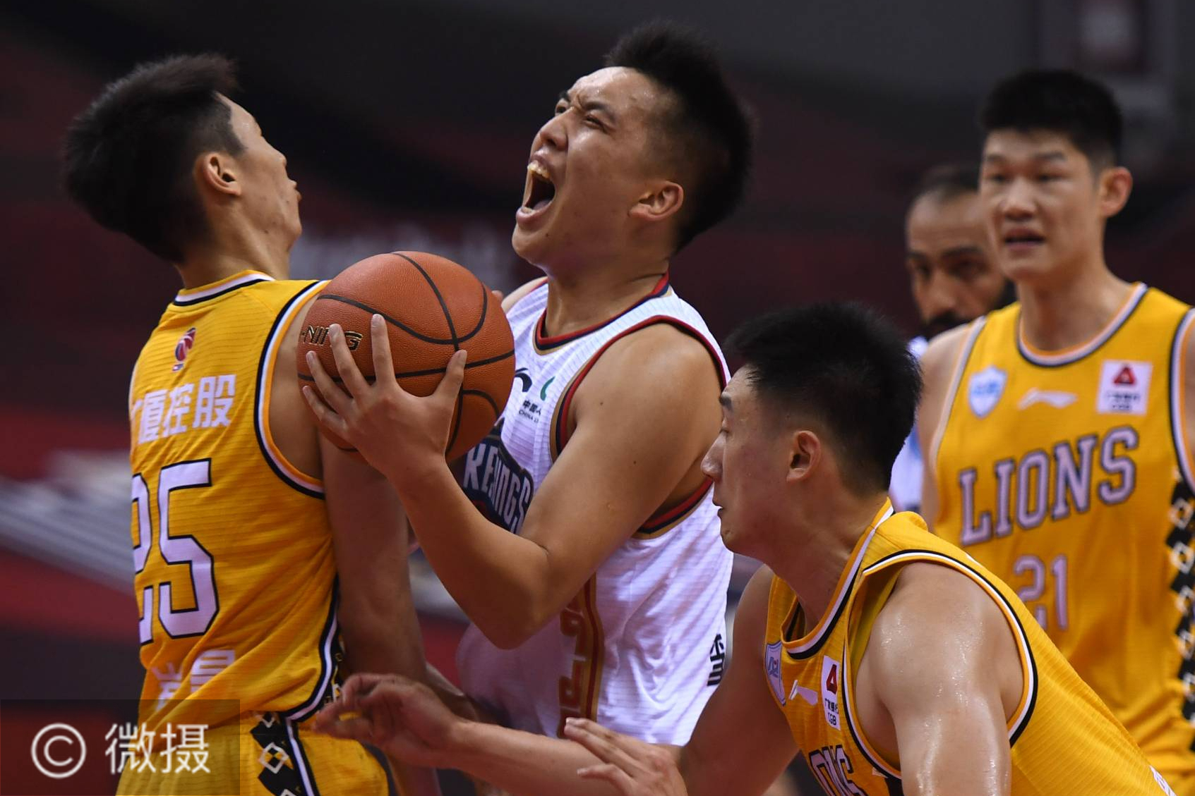 6月20日,南京同曦宙光队球员李柏润(左二)在比赛中进攻受阻。当日,在青岛国信体育馆举行的2019-2020赛季中国男子篮球职业联赛(CBA)复赛第一阶段首场比赛中,南京同曦宙光队迎战浙江广厦控股队。新华社记者李紫恒摄