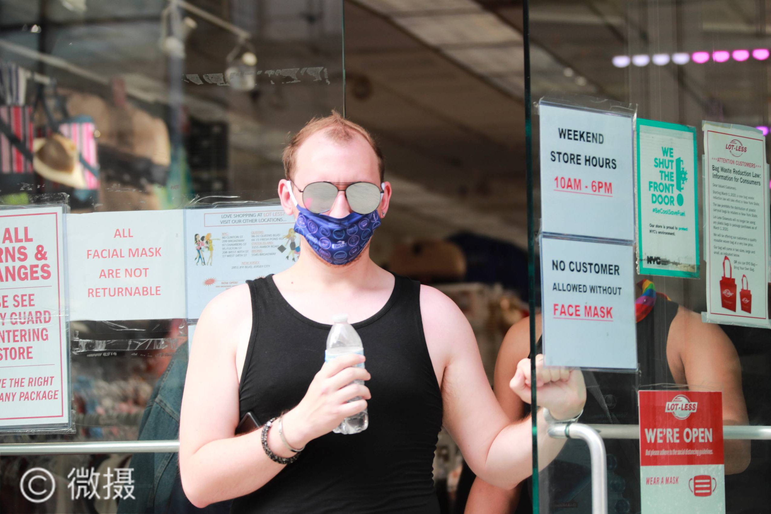 6月19日,一名戴口罩的男子走出美国纽约一家超市。美国约翰斯·霍普金斯大学19日发布的新冠疫情最新统计数据显示,截至美国东部时间19日12时33分(北京时间20日0时33分),美国累计确诊病例2203659例,累计死亡病例118659例。新华社记者 王迎 摄