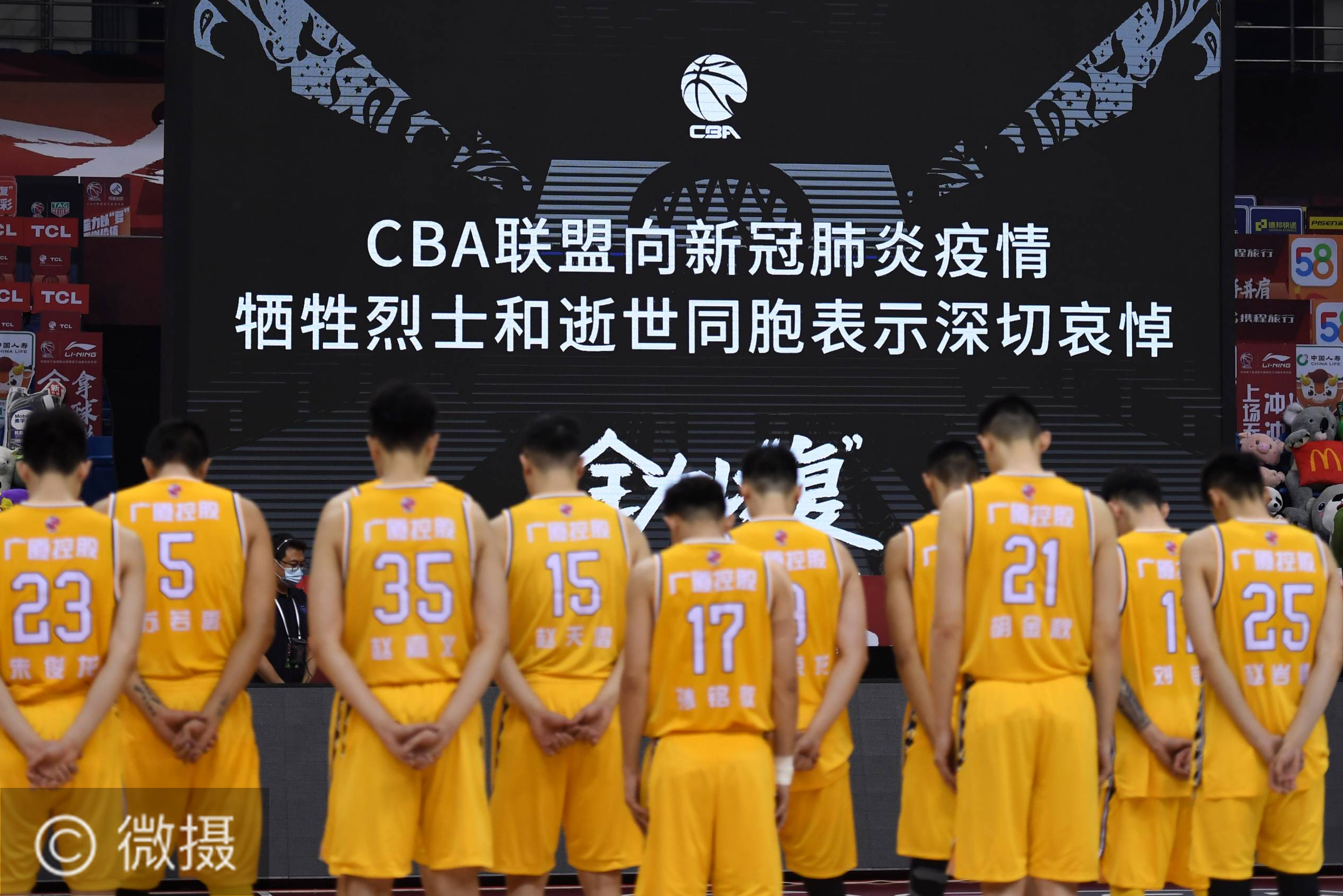 6月20日,浙江广厦控股队球员在仪式上为新冠肺炎疫情牺牲烈士和逝世同胞默哀。当日,2019-2020赛季中国男子篮球职业联赛(CBA)复赛第一阶段青岛赛区比赛拉开战幕。在青岛国信体育馆举行的首场比赛前,中国篮协举行了“致敬抗疫英雄”纪念、默哀仪式。新华社记者 李紫恒 摄