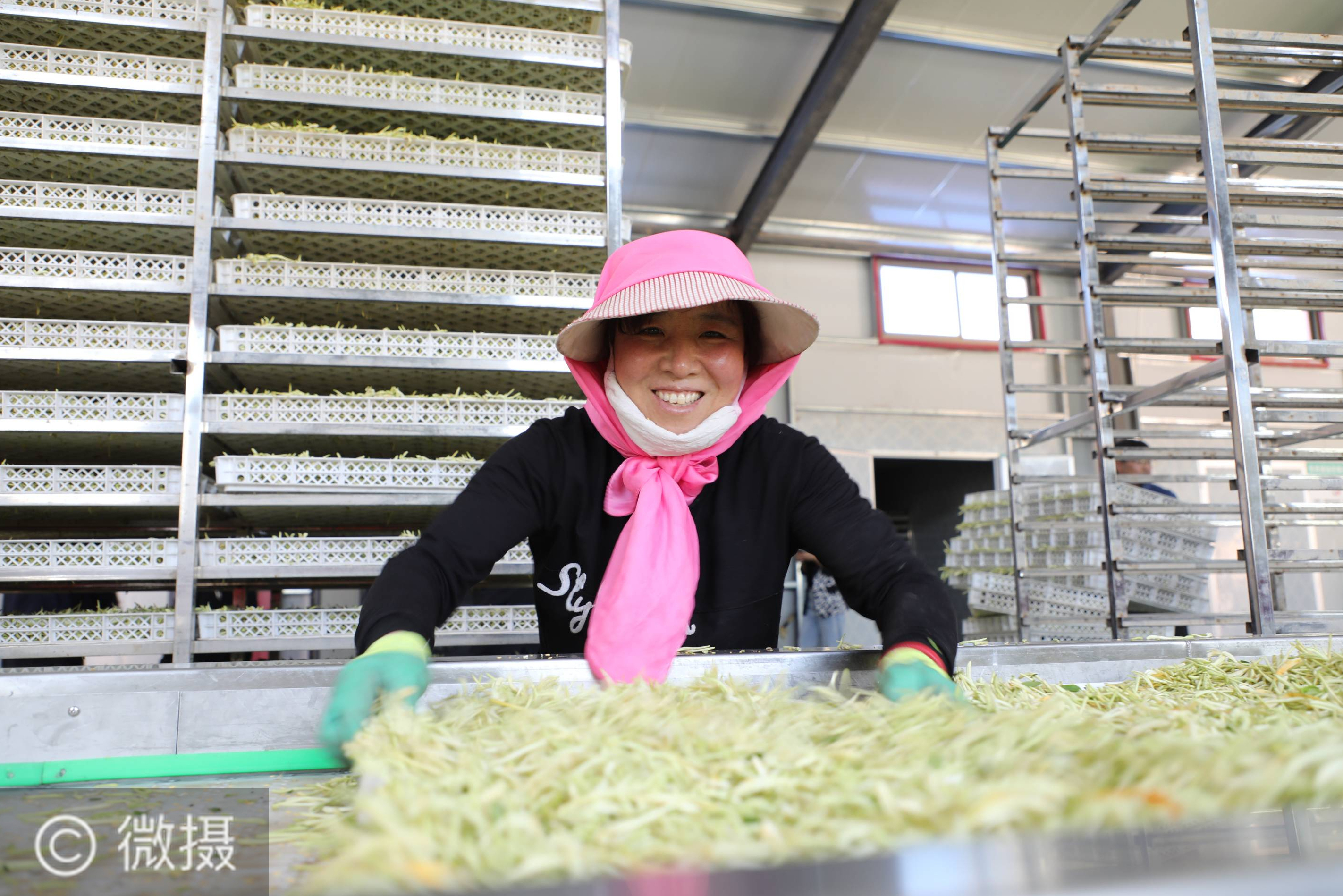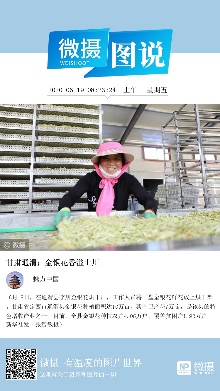 6月18日,在通渭县李店金银花烘干厂,工作人员将一盘金银花鲜花放上烘干架。甘肃省定西市通渭县金银花种植面积达10万亩,其中已产花7万亩,是该县的特色增收产业之一。目前,全县金银花种植农户4.06万户,覆盖贫困户1.93万户。新华社发(张智敏摄)