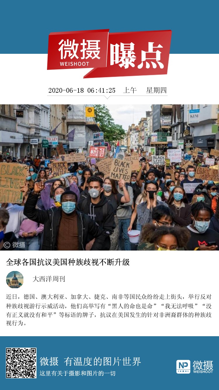 近日,德国、澳大利亚、加拿大、捷克、南非等国民众纷纷走上街头,举行反对种族歧视游行示威活动,他们高举写有“黑人的命也是命”“我无法呼吸”“没有正义就没有和平”等标语的牌子,抗议在美国发生的针对非洲裔群体的种族歧视行为。