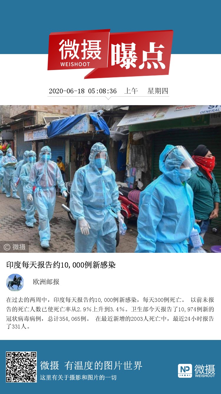 在过去的两周中,印度每天报告约10,000例新感染,每天300例死亡。 以前未报告的死亡人数已使死亡率从2.9%上升到3.4%。卫生部今天报告了10,974例新的冠状病毒病例,总计354,065例。 在最近新增的2003人死亡中,最近24小时报告了331人。