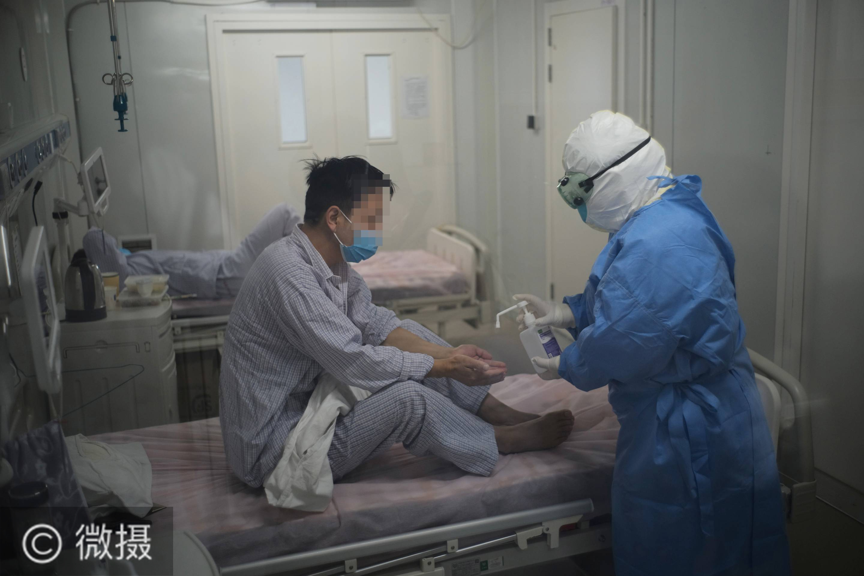6月16日,在北京地坛医院隔离病房内,护士帮助患者进行手部消杀。当日下午,记者探访北京市收治新冠肺炎患者的地坛医院隔离病房。6月11日以来,北京连续发现新冠肺炎确诊病例。截至6月16日零时,新增确诊病例已达106例。目前,北京市报告的确诊患者均在地坛医院治疗。新华社记者 彭子洋