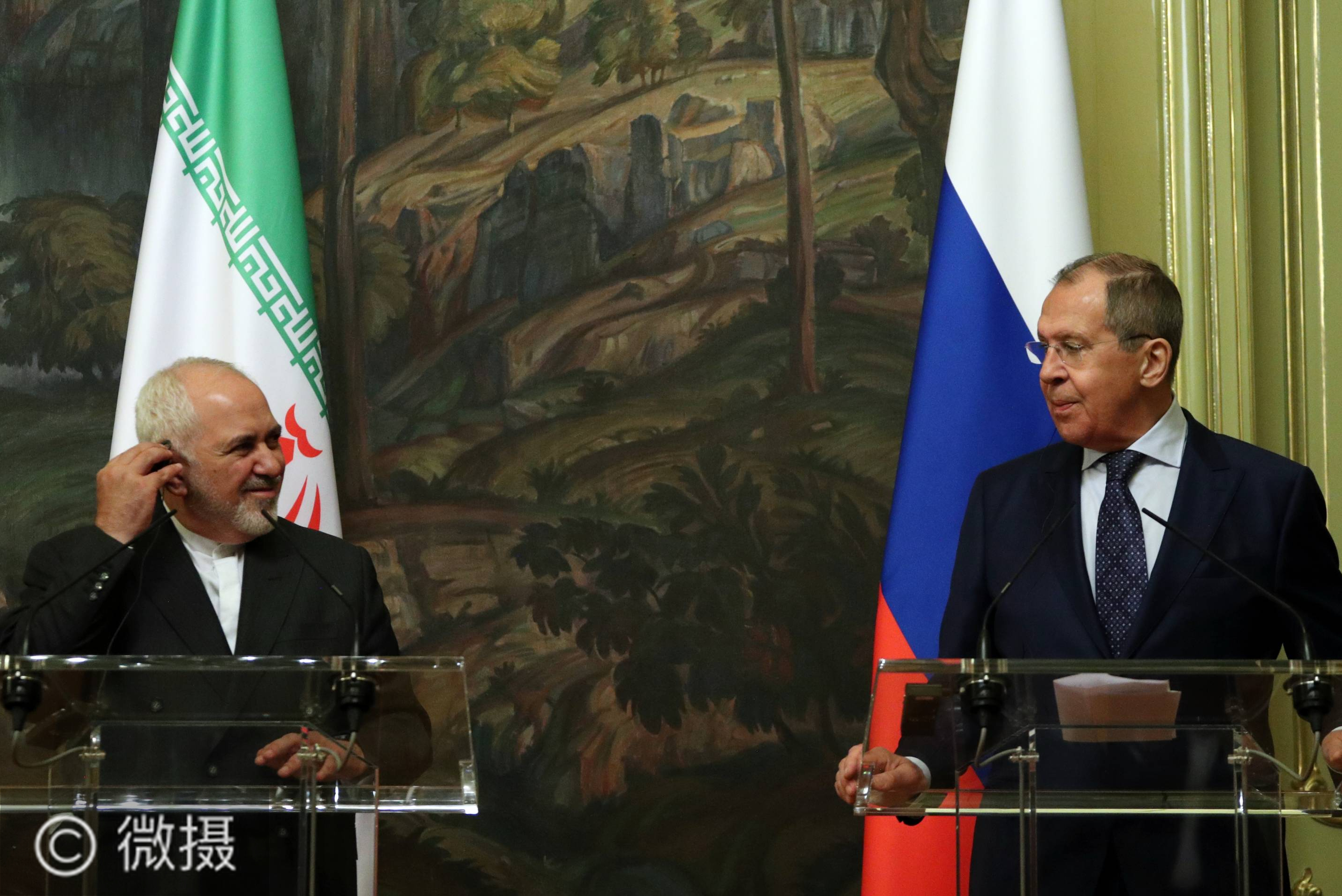 这张俄罗斯外交部6月16日发布的照片显示,俄罗斯外长拉夫罗夫(右)与伊朗外长扎里夫在俄罗斯首都莫斯科共同出席新闻发布会。俄罗斯外长拉夫罗夫16日与到访的伊朗外长扎里夫举行会谈时说,俄罗斯愿继续扩大与伊朗在各领域的合作。新华社/卫星社