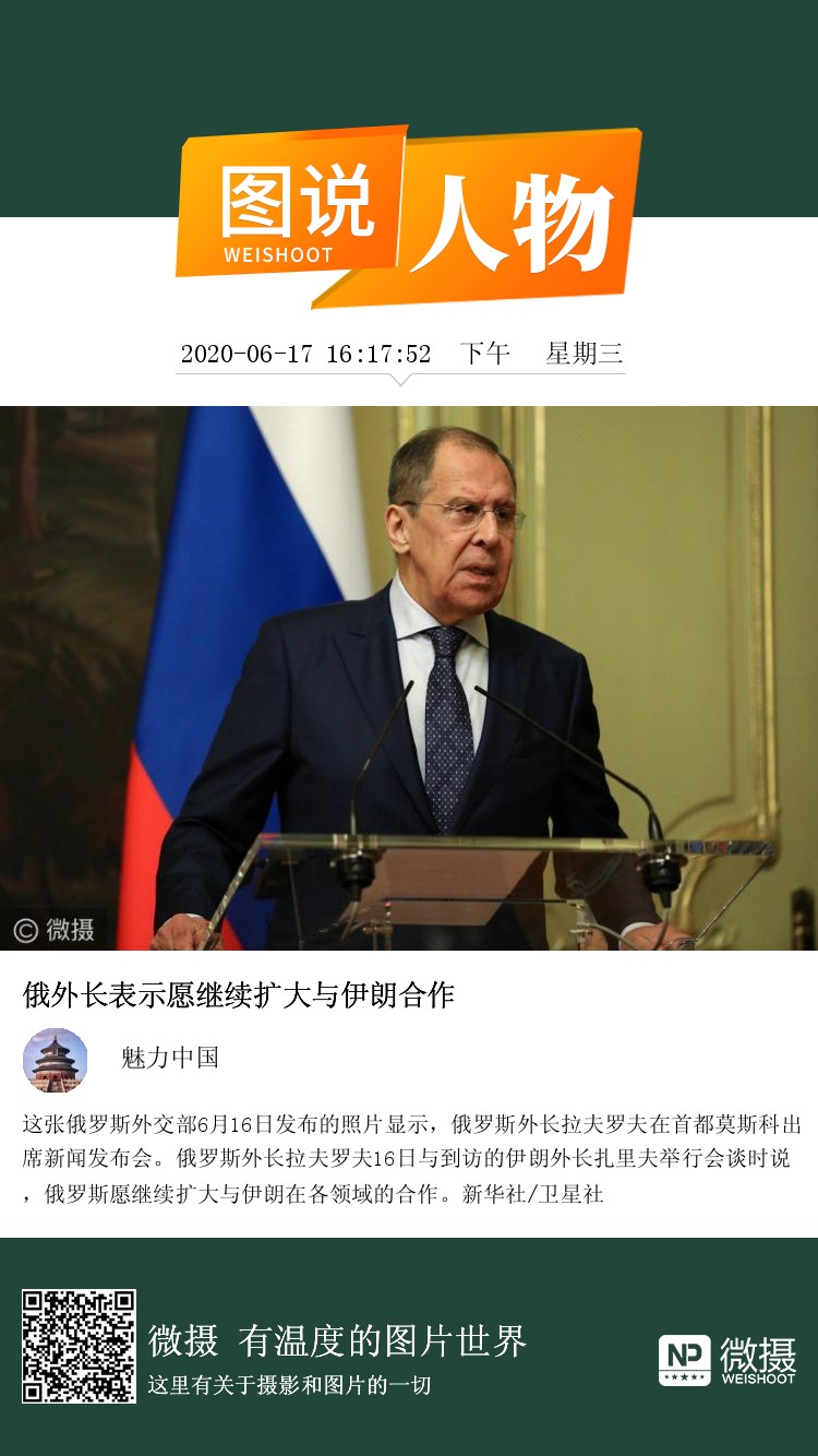 这张俄罗斯外交部6月16日发布的照片显示,俄罗斯外长拉夫罗夫在首都莫斯科出席新闻发布会。俄罗斯外长拉夫罗夫16日与到访的伊朗外长扎里夫举行会谈时说,俄罗斯愿继续扩大与伊朗在各领域的合作。新华社/卫星社