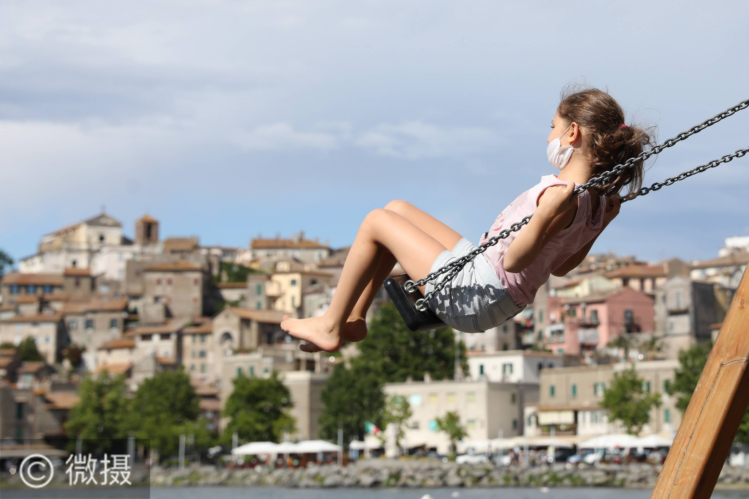 6月16日,在意大利罗马附近的安圭拉腊萨巴齐亚,一名女孩在布拉恰诺湖边荡秋千。意大利民事保护部门16日发布的数据显示,该国新冠疫情继续好转,当天在重症监护室接受治疗的新冠患者人数比前一天减少30人,降至177人,为3月3日以来的最低水平。新华社记者程婷婷摄