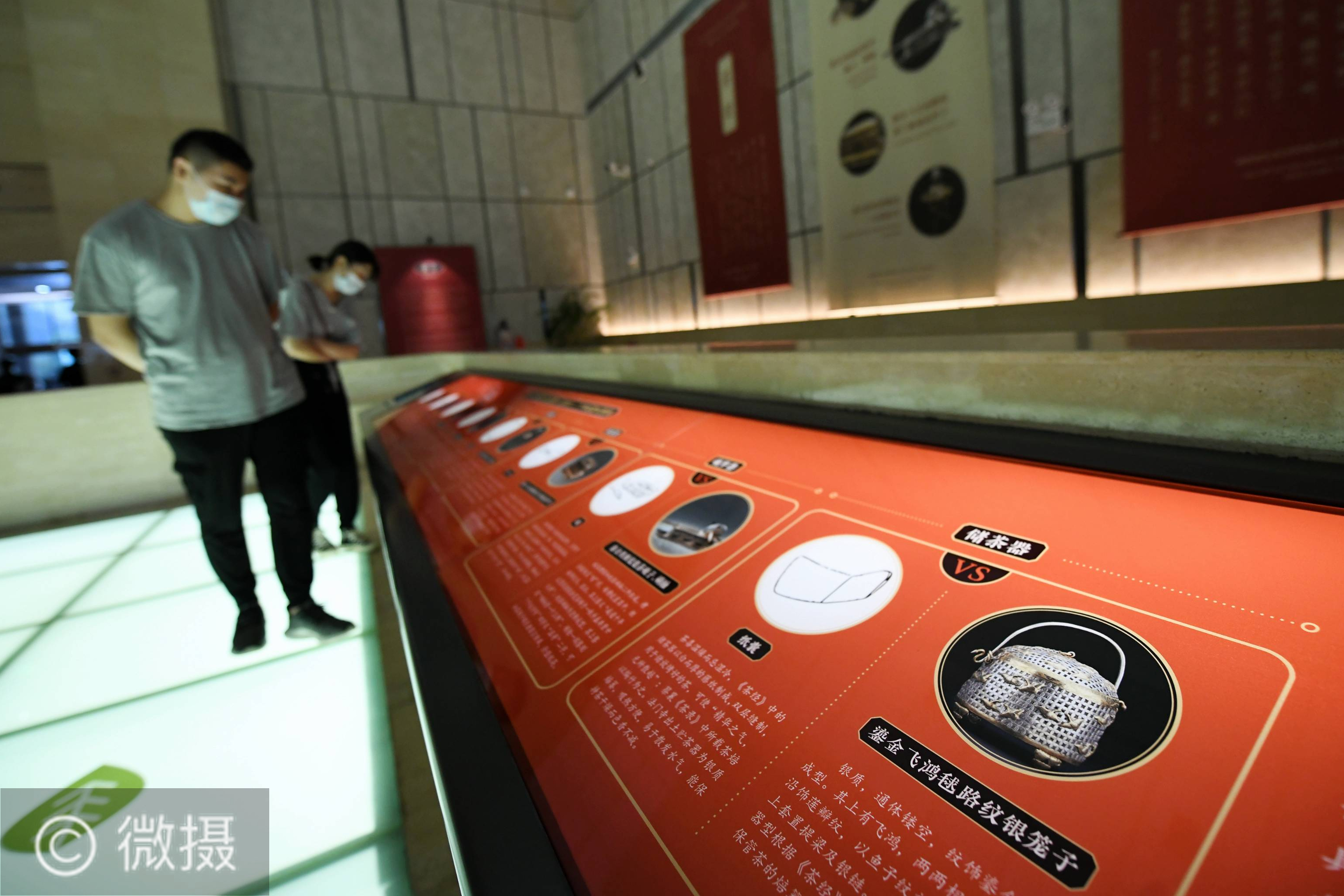 6月16日,游客在陕西历史博物馆国宝厅内参观法门寺出土皇家茶具展览。 展览展出了从1987年法门寺地宫出土的器物中挑选出来的一组7件包括储茶器、筛茶器等在内的唐代皇家茶具,将面向公众免费展出5个月。新华社记者 李一博 摄