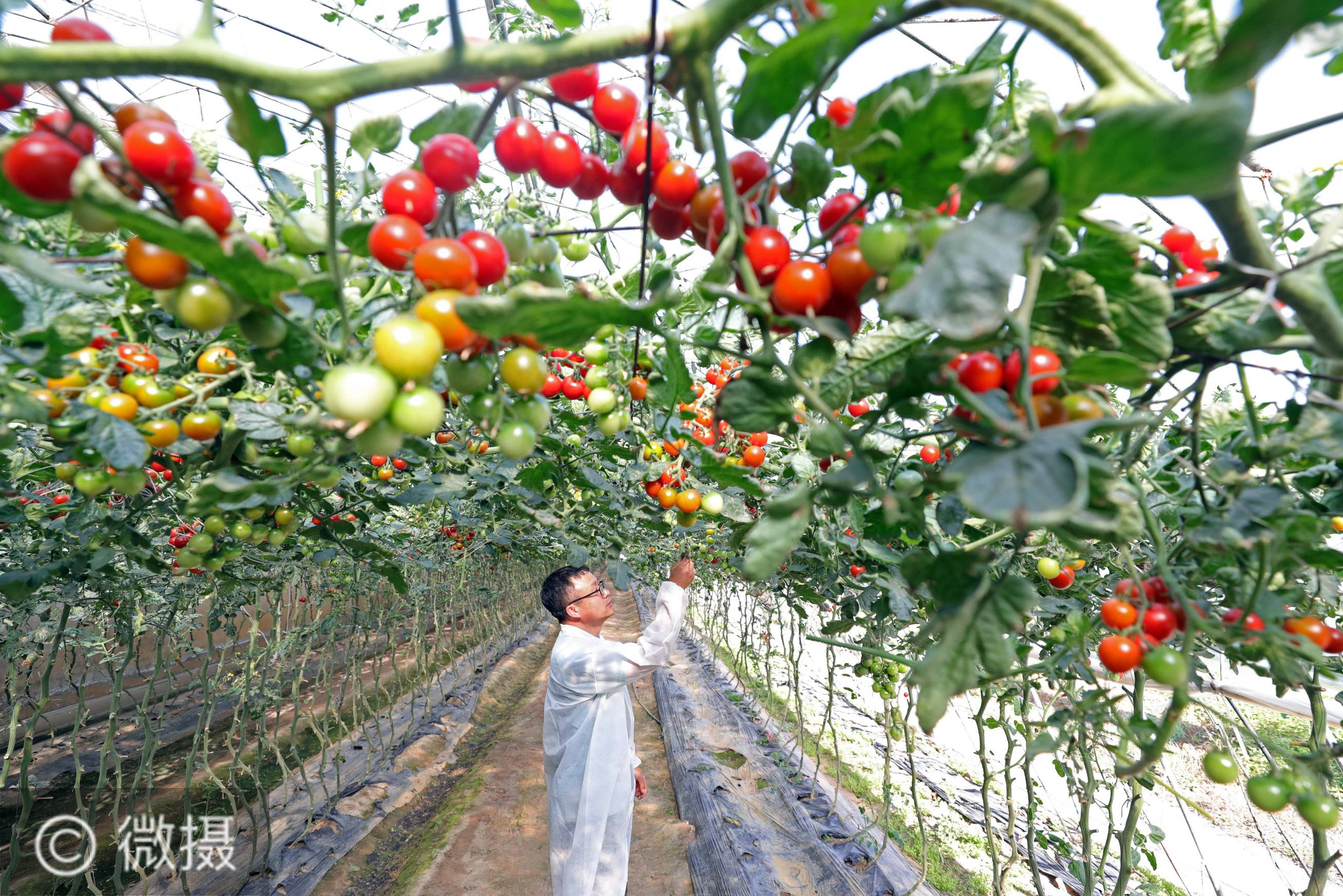 6月15日,辽宁依农农业科技有限责任公司科研人员在查看无限生长型串收小番茄生长情况。近年来,辽宁省铁岭市铁岭县大力发展现代农业,形成了引进、筛选、培育果蔬新品种和发展绿色水培蔬菜种植技术产业链条。目前,在辽宁主栽区已推广优良品种40余个,助力农民增收。新华社记者 杨青摄