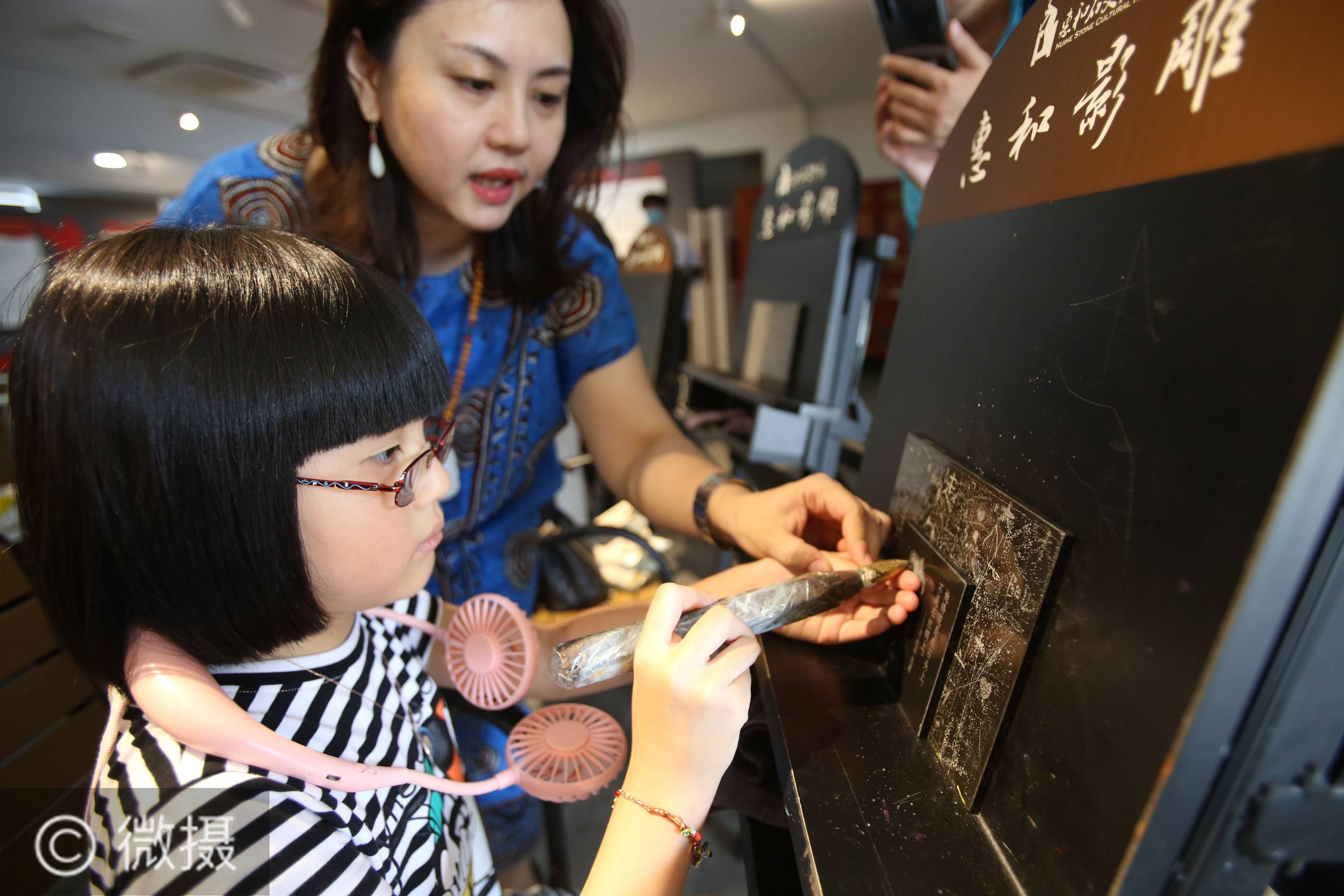 感受非遗之美。6月13日,小朋友和家长在福建省厦门惠和石文化园举行的非遗亲子活动中体验石影雕制作技艺。当日是“文化和自然遗产日”,多地举办形式多样的主题文化活动。新华社发(曾德猛 摄)