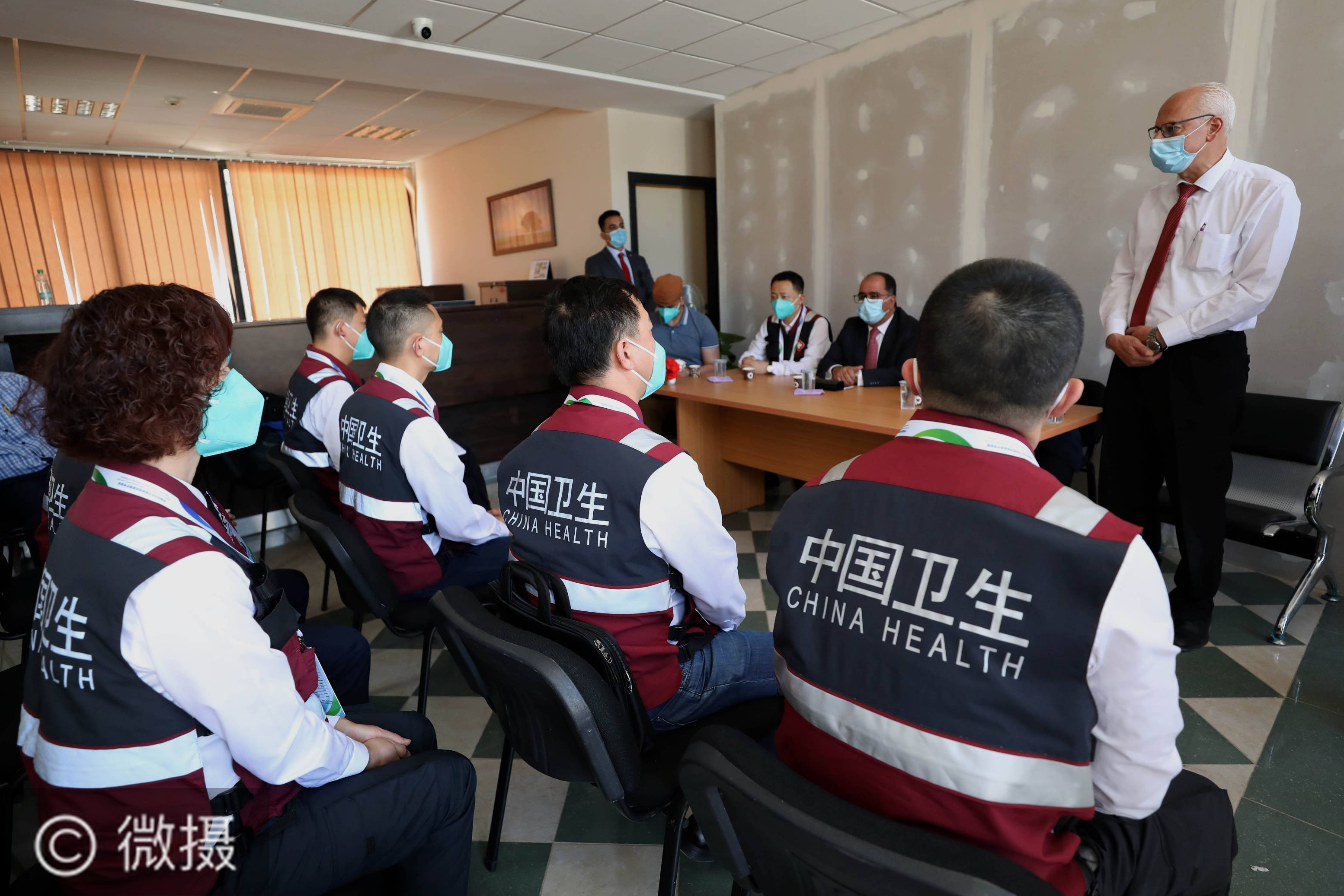 6月13日,在约旦河西岸城市伯利恒,中国赴巴勒斯坦抗疫医疗专家组与当地一家医院的管理人员交流。当日,中国赴巴勒斯坦抗疫医疗专家组在巴勒斯坦新冠疫情首发地、约旦河西岸城市伯利恒考察,并就新冠病毒防控和治疗与当地官员和医疗专家深入交流。新华社发(艾曼·努巴尼摄)