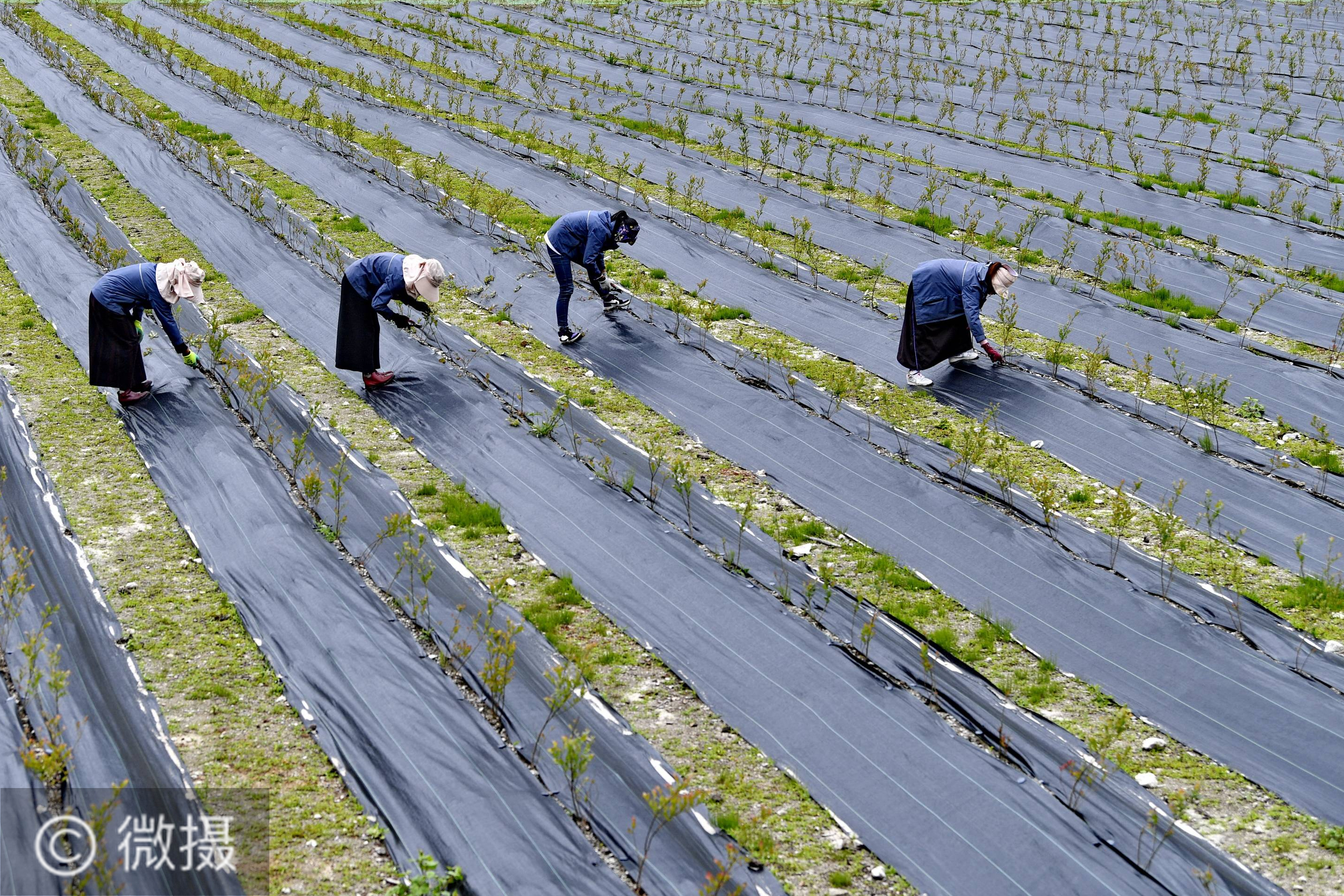 6月12日,多布村务工人员在蓝莓基地管理新近栽培的蓝莓苗。西藏林芝市巴宜区八一镇多布村蓝莓基地自2017年开始建设,基地采取“政府+公司+村集体”的运营模式,现已种植蓝莓300余亩。多布村45户农牧民家庭通过基地建设、土地入股、效益分红和就近务工等实现增收。新华社记者 张汝锋 摄