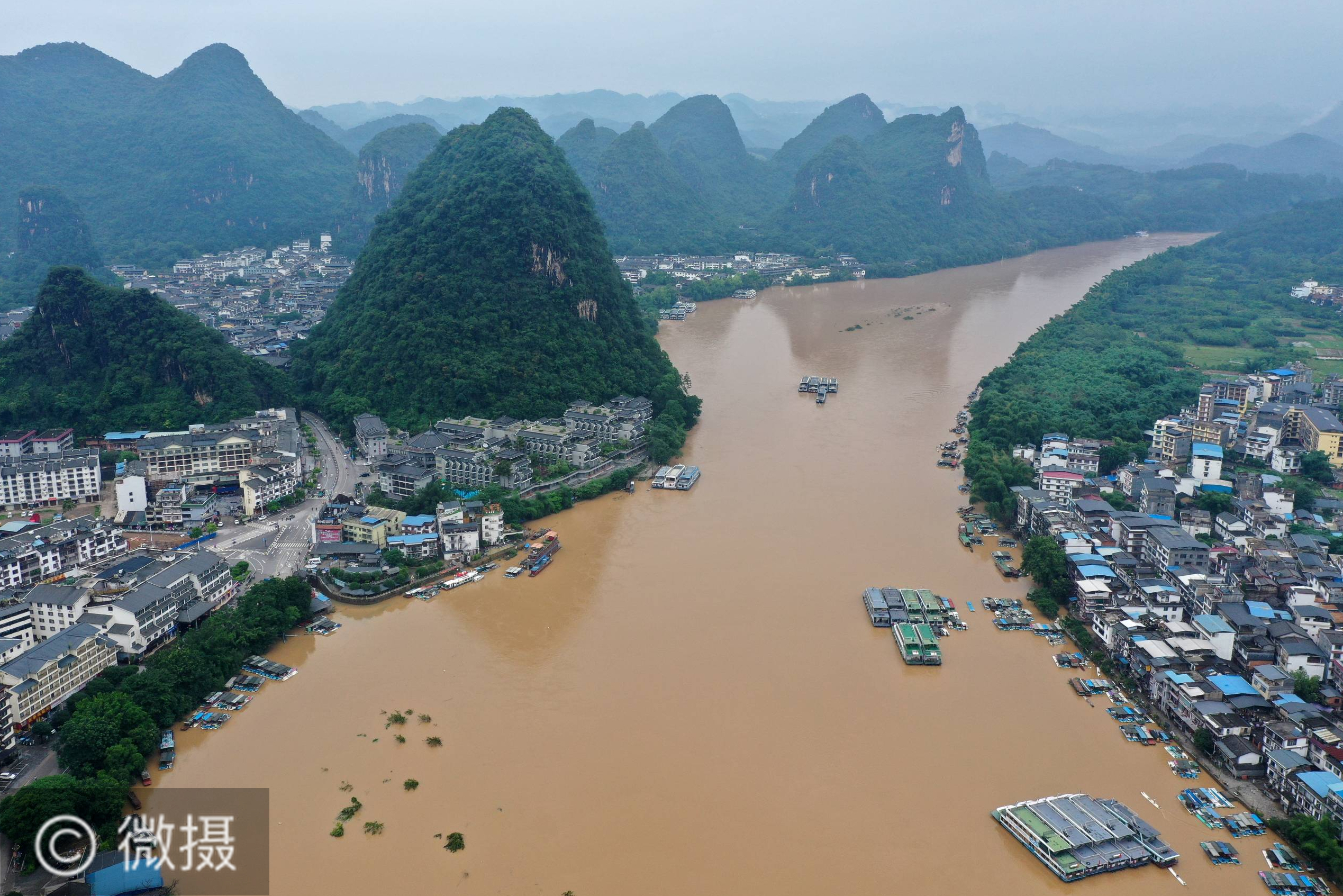 6月8日洪水经过漓江广西阳朔县城河段。据悉,6月1日以来,我国南方地区发生入汛以来最强降雨过程,11日,应急管理部会同国家粮食和物资储备局,向广西紧急组织调拨3000顶帐篷、3000张折叠床,支持地方救灾工作,保障受灾群众基本生活。 新华社记者 陆波岸 摄