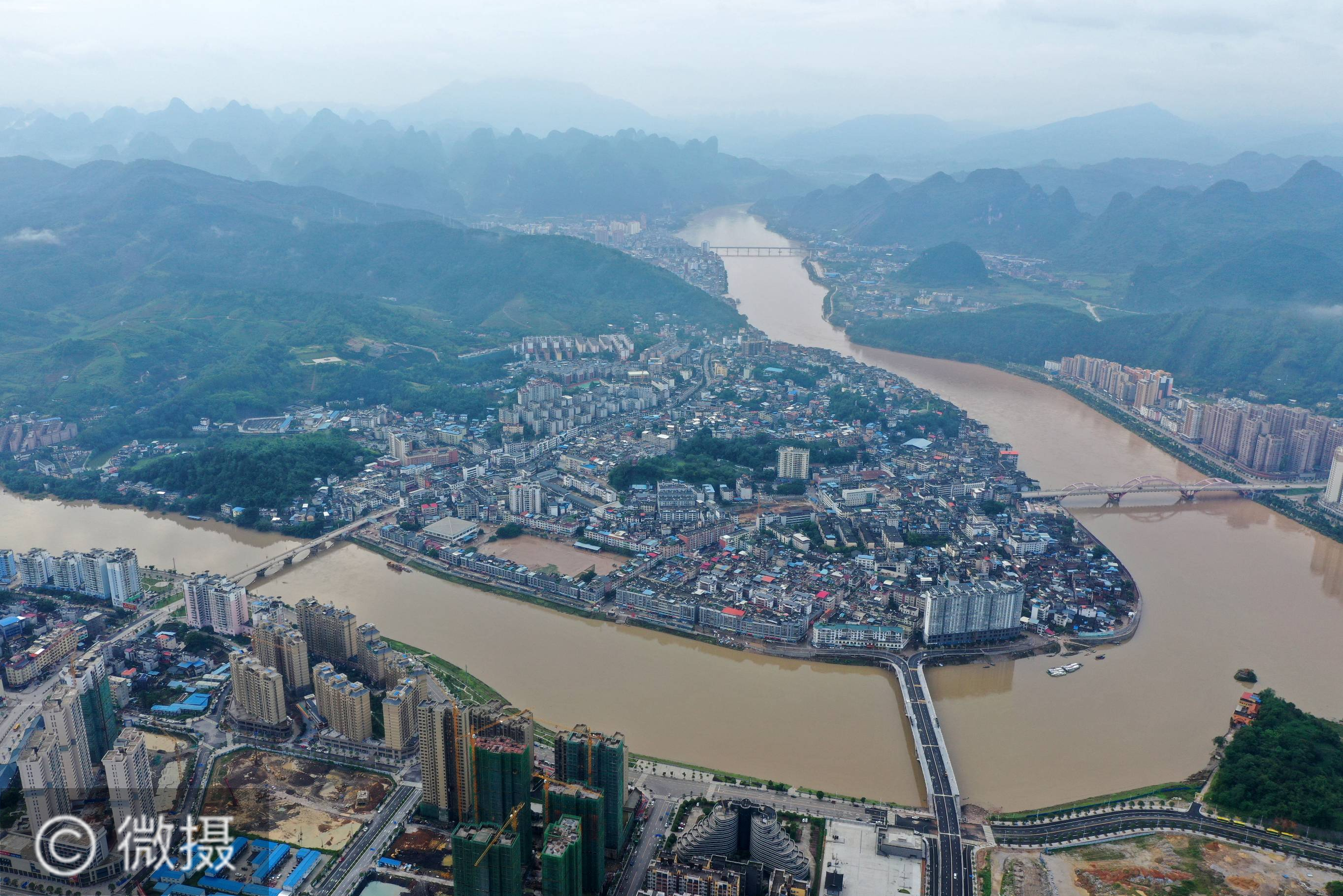6月11日,洪水经过广西平乐县城河段。6月1日以来,我国南方地区发生入汛以来最强降雨过程,广西壮族自治区桂林、河池、柳州等9市60个县(市、区)遭受严重洪涝灾害。据初步统计,灾害已造成广西145.9万人受灾,6人死亡,3人失踪,22.1万人紧急转移安置。新华社记者 陆波岸 摄