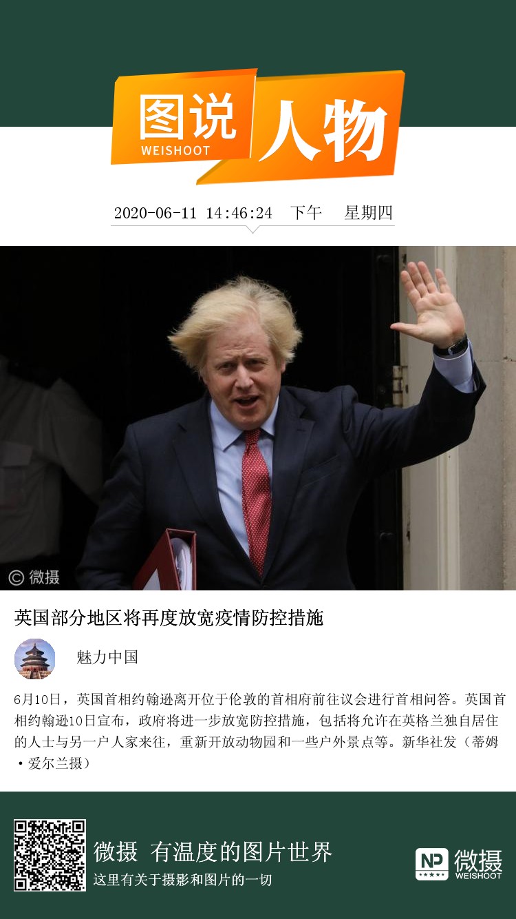 6月10日,英国首相约翰逊离开位于伦敦的首相府前往议会进行首相问答。英国首相约翰逊10日宣布,政府将进一步放宽防控措施,包括将允许在英格兰独自居住的人士与另一户人家来往,重新开放动物园和一些户外景点等。新华社发(蒂姆·爱尔兰摄)