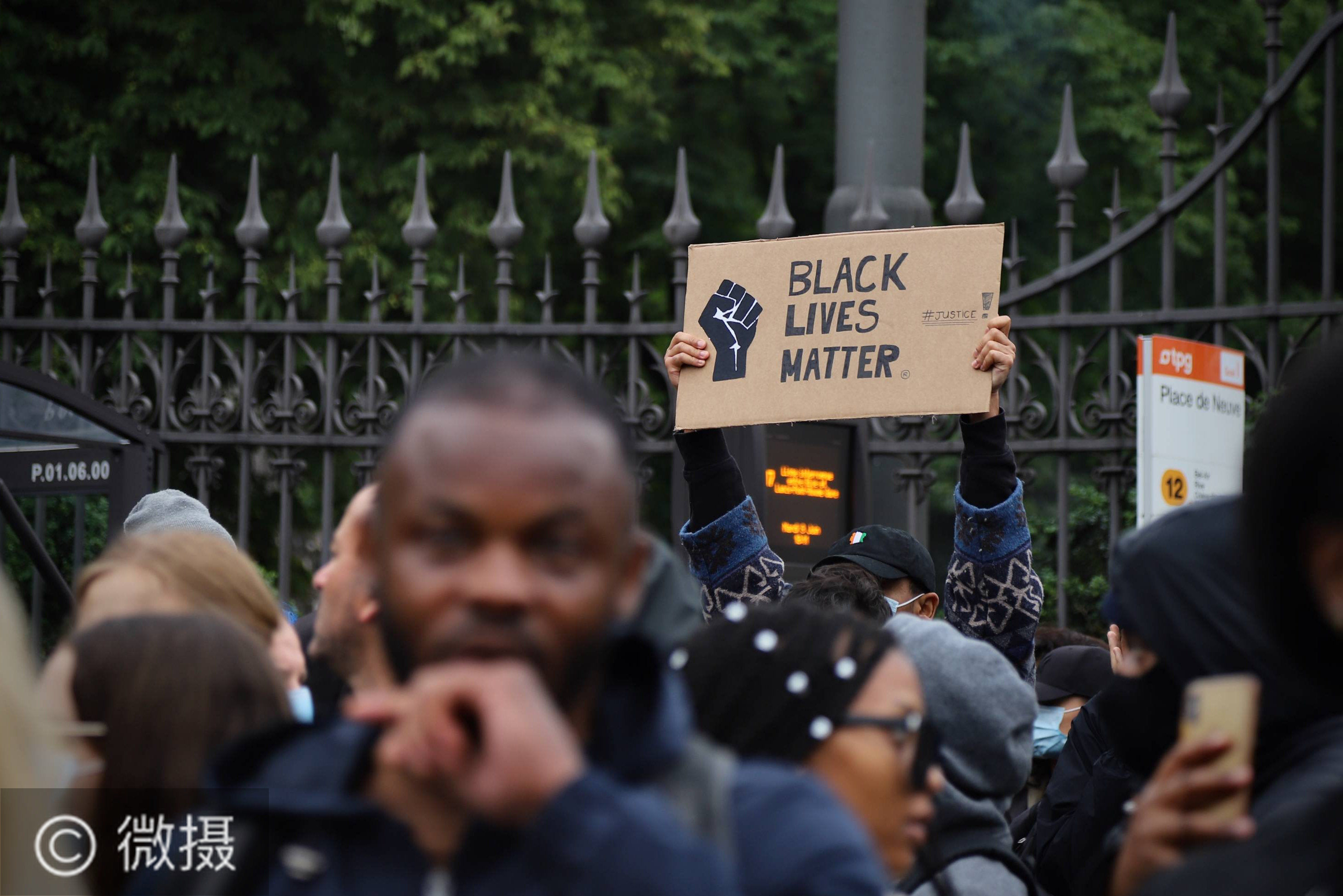 6月9日,抗议者手举“黑人的命也是命”标语牌在瑞士日内瓦街头参加示威活动。众多抗议者9日聚集在瑞士日内瓦老城附近的广场,抗议在美国发生的针对非洲裔群体的种族歧视行为。新华社发(李叶摄)