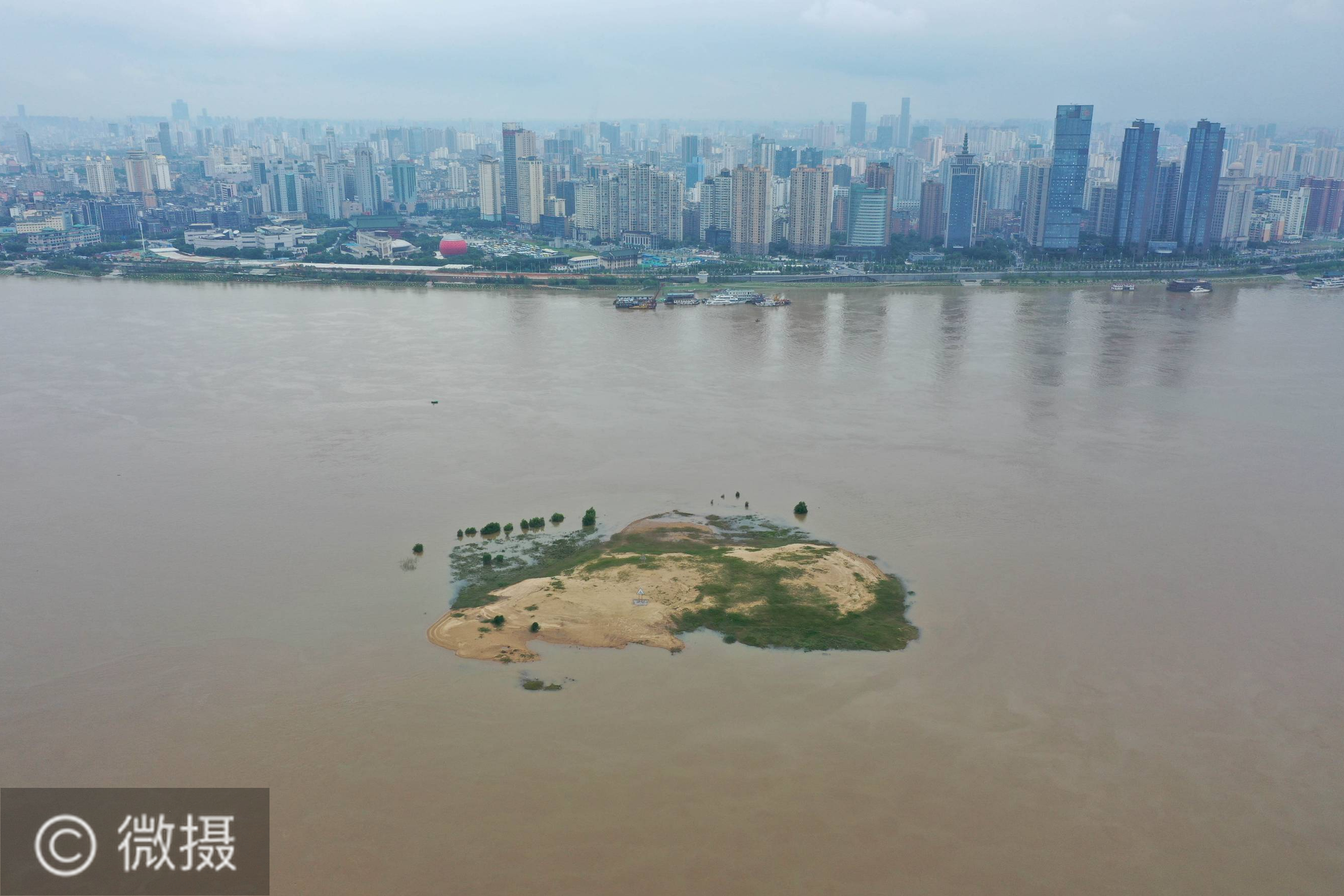 这是6月9日拍摄的赣江南昌段江面,江心一处沙洲大部分已经被淹没(无人机照片)。受连日持续降雨影响,赣江江西南昌段水位缓慢升高。6月9日6时,赣江南昌段水位18.95米。6月7日起,当地海事部门开始对赣江南昌段水域实施交通管制。新华社记者 周密 摄