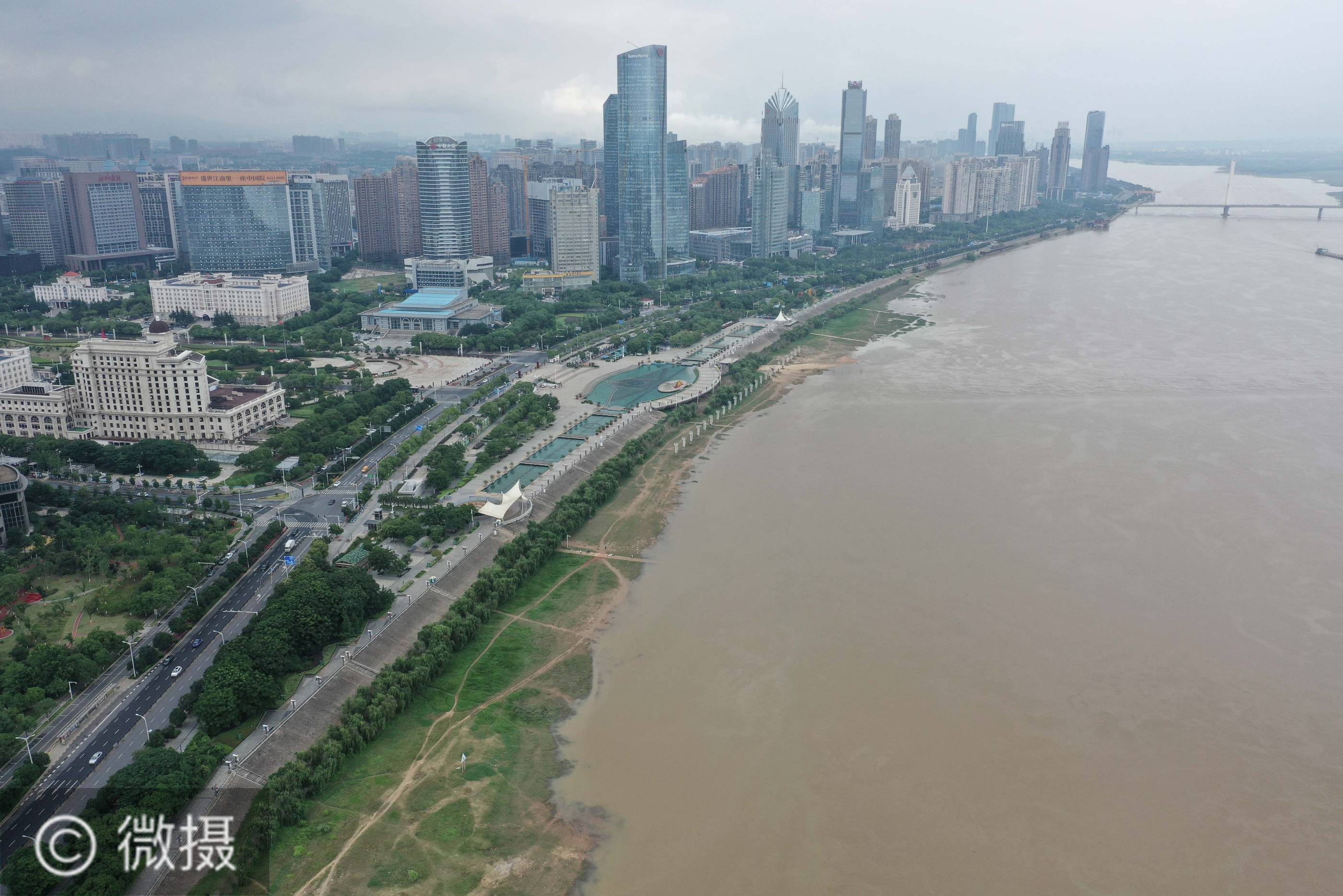 这是6月9日拍摄的赣江南昌段江面(无人机照片)。受连日持续降雨影响,赣江江西南昌段水位缓慢升高。6月9日6时,赣江南昌段水位18.95米。6月7日起,当地海事部门开始对赣江南昌段水域实施交通管制。新华社记者 周密 摄