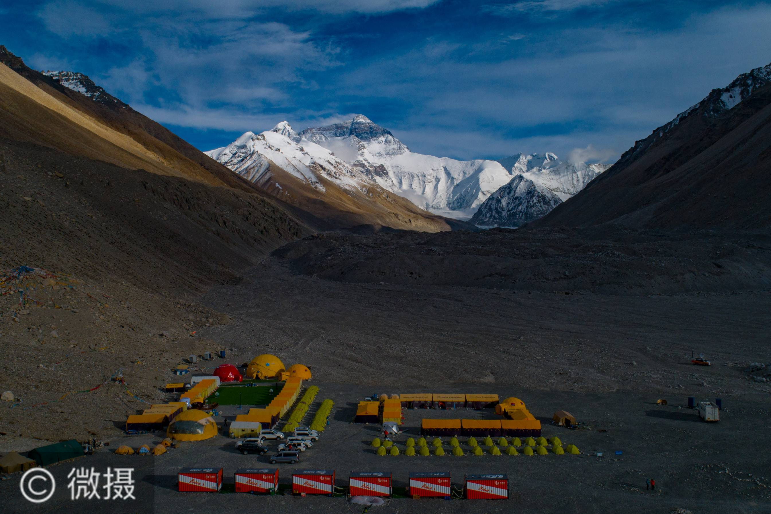 这是海拔5200米的珠峰登山大本营(无人机照片,5月25日摄)。从空中俯瞰珠穆朗玛峰北坡,生机勃勃的高原湿地、蜿蜒曲折的盘山公路、壮丽秀美的绒布冰川,还有安静的村庄和热闹的登山营地,共同构成一幅壮美画卷。新华社记者普布扎西 摄
