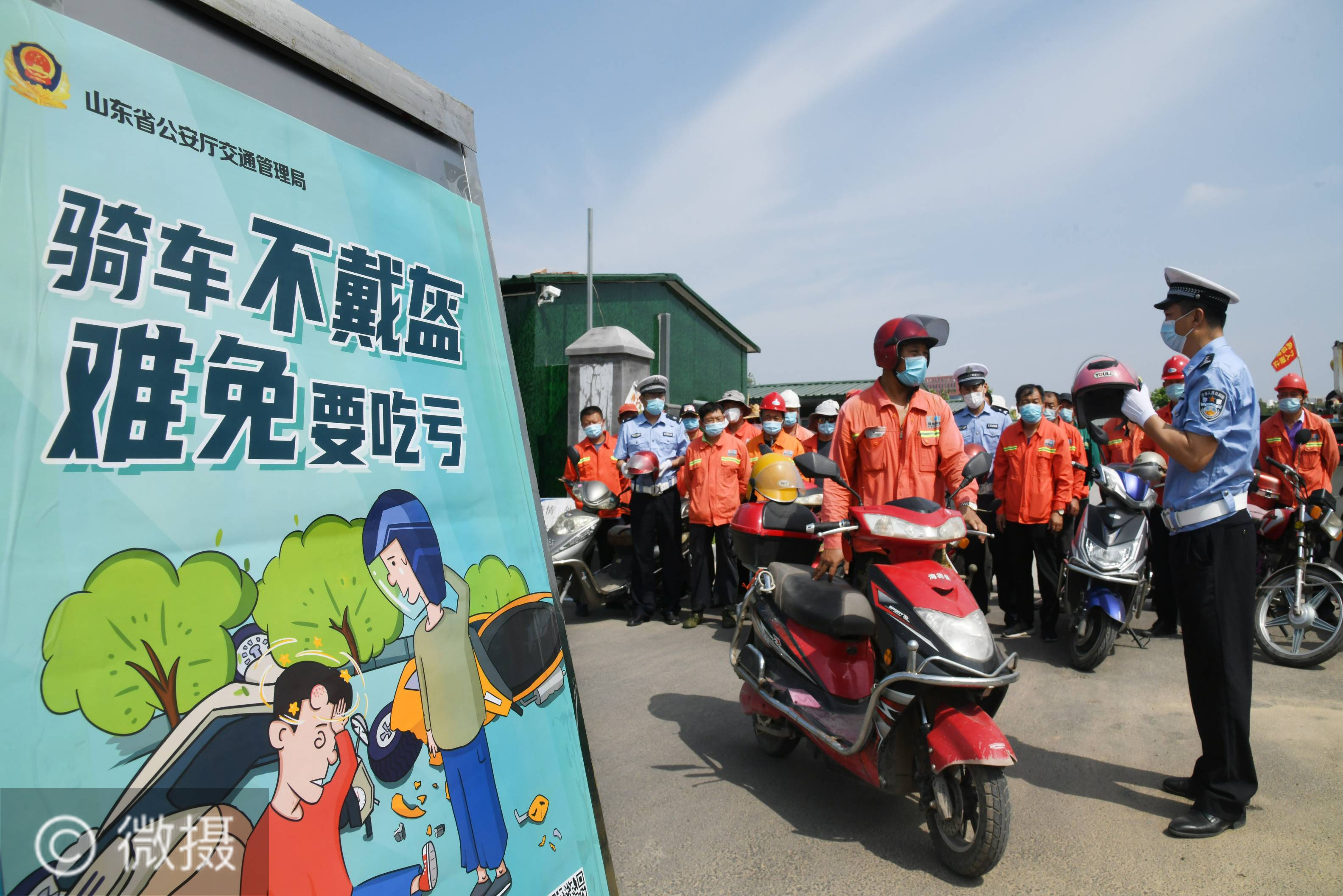 连日来,青岛交警部门通过进企业、进社区、进工地等形式,持续开展“一盔一带”守护生命宣传活动。宣传结合典型道路交通事故案例,讲解驾乘摩托车不按规定佩戴安全头盔、驾驶汽车不系安全带的危险后果,进一步提升摩托车、电动自行车骑乘人员和汽车驾乘人员安全防护意识。 新华社记者 李紫恒摄