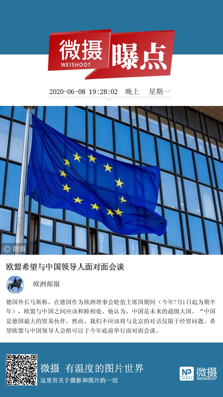 德国外长马斯称,在德国作为欧洲理事会轮值主席国期间(今年7月1日起为期半年),欧盟与中国之间应该和睦相处。他认为,中国是未来的超级大国。“中国是德国最大的贸易伙伴。然而,我们不应该将与北京的对话仅限于经贸问题。希望欧盟与中国领导人会晤可以于今年底前举行面对面会谈。