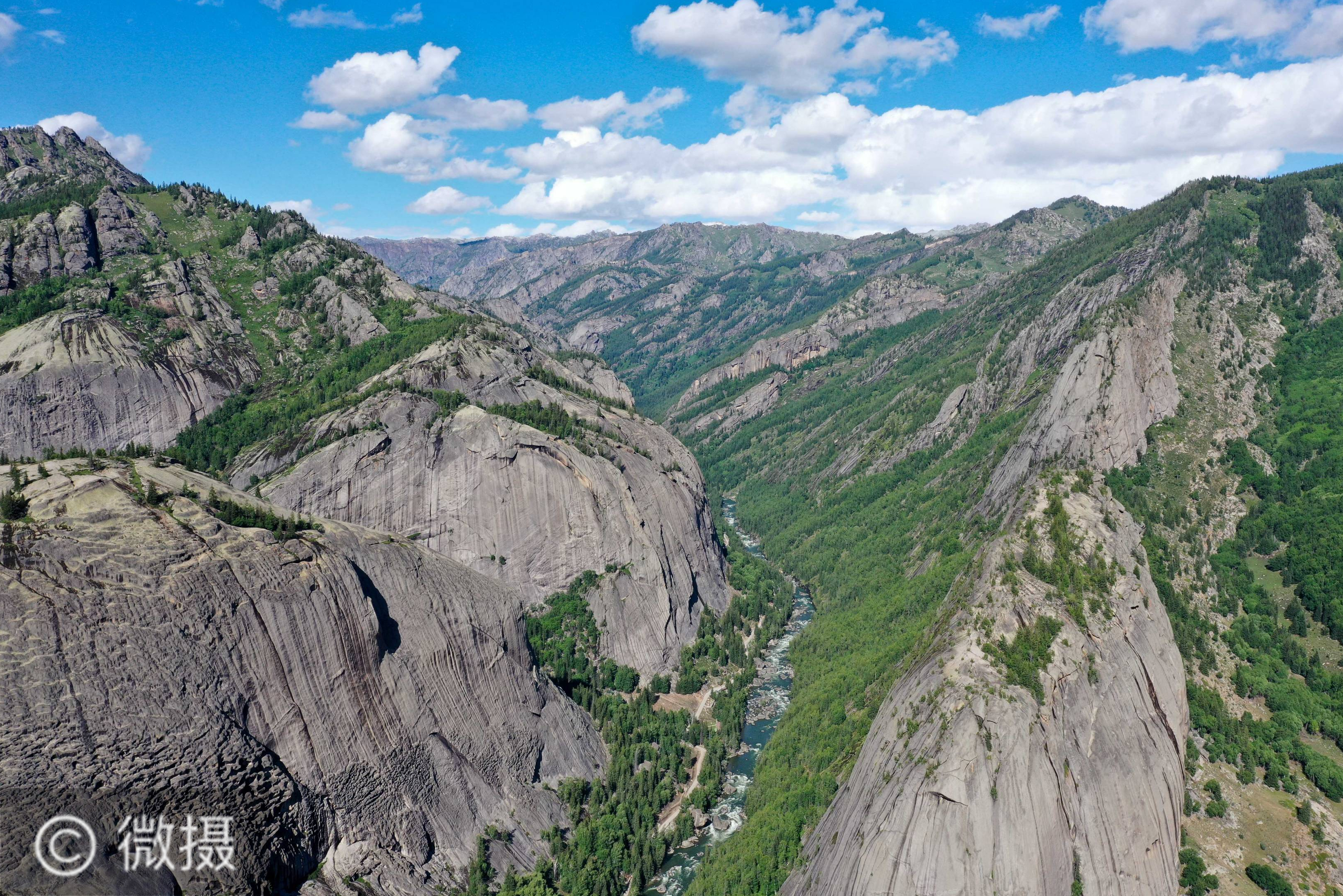这是6月7日新疆可可托海世界地质公园额尔齐斯大峡谷。进入6月,国家5A级旅游景区新疆可可托海世界地质公园迎来最美的季节。额尔齐斯河碧波荡漾,高山夹峙,石峰萦回,树木葱茏,形成一幅幅美丽的画卷。这里是一个集天然景色、地质文化于一体的风景名胜区。新华社记者 丁磊 摄