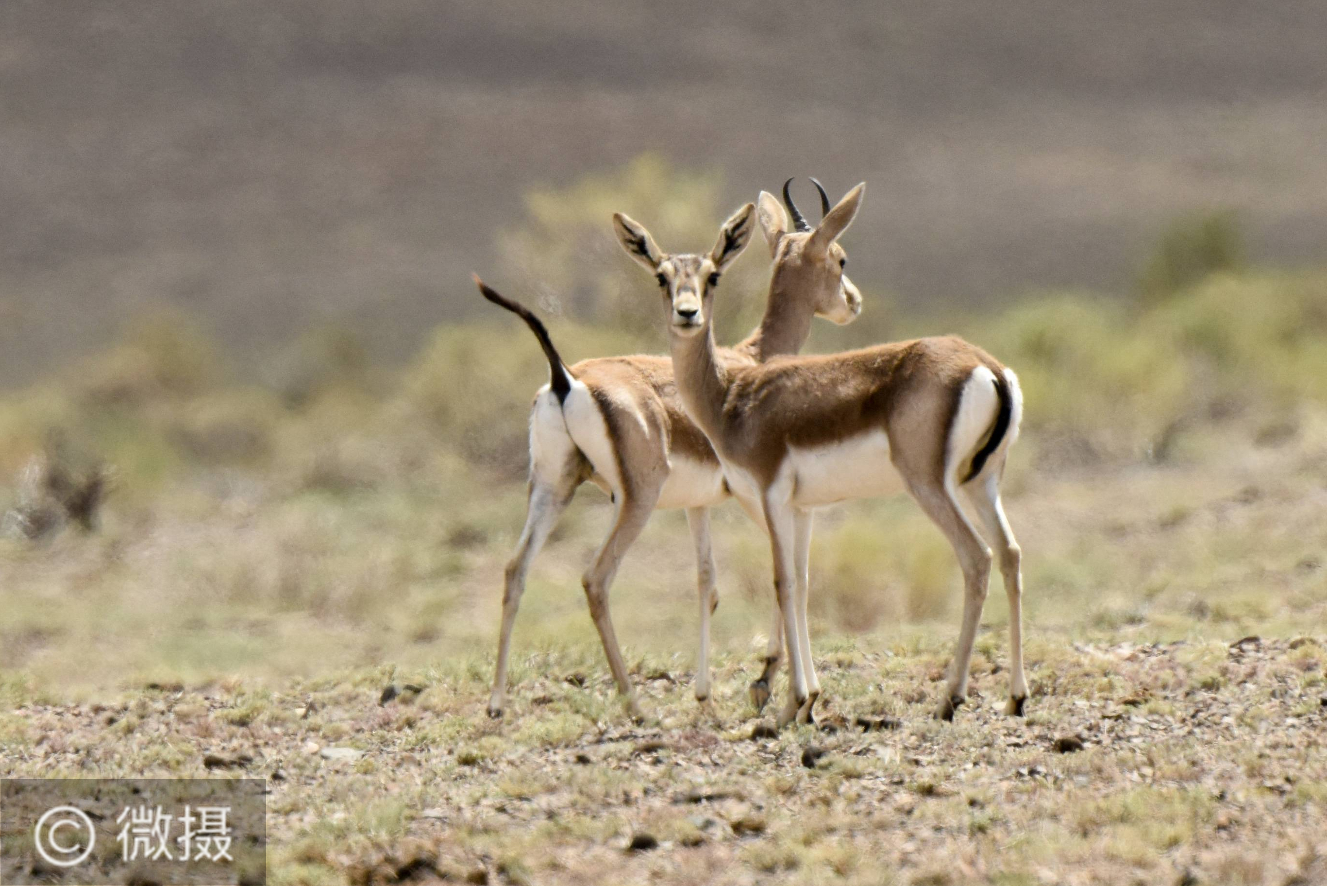 6月6日,两只鹅喉羚在新疆卡拉麦里山有蹄类野生动物自然保护区四处张望。位于新疆准噶尔盆地东缘的新疆卡拉麦里山有蹄类野生动物自然保护区,是以保护普氏野马、蒙古野驴、鹅喉羚等多种珍贵、濒危有蹄类野生动物及其栖息地为主的野生动物类型自然保护区。 新华社记者 丁磊 摄