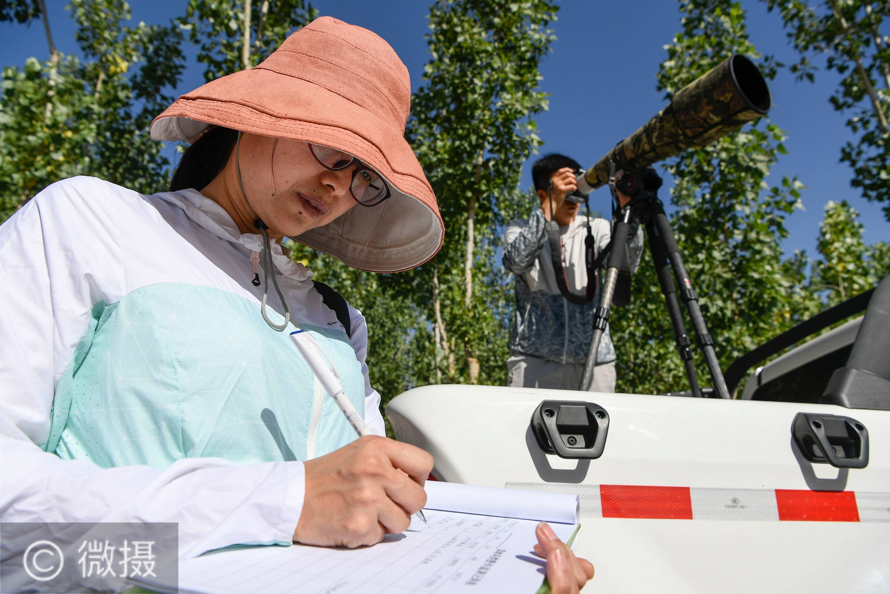 6月3日,李学明的同事张海荣(左)在填写湿地鸟类野外监测记录表。28岁的李学明是宁夏吴忠市自然资源局湿地保护管理中心的一名监测人员,因为对鸟类痴迷,人们也常叫他护鸟员。2015年,主修野生动物与自然保护专业的李学明大学毕业,进入湿地保护管理中心工作。新华社记者 冯开华 摄