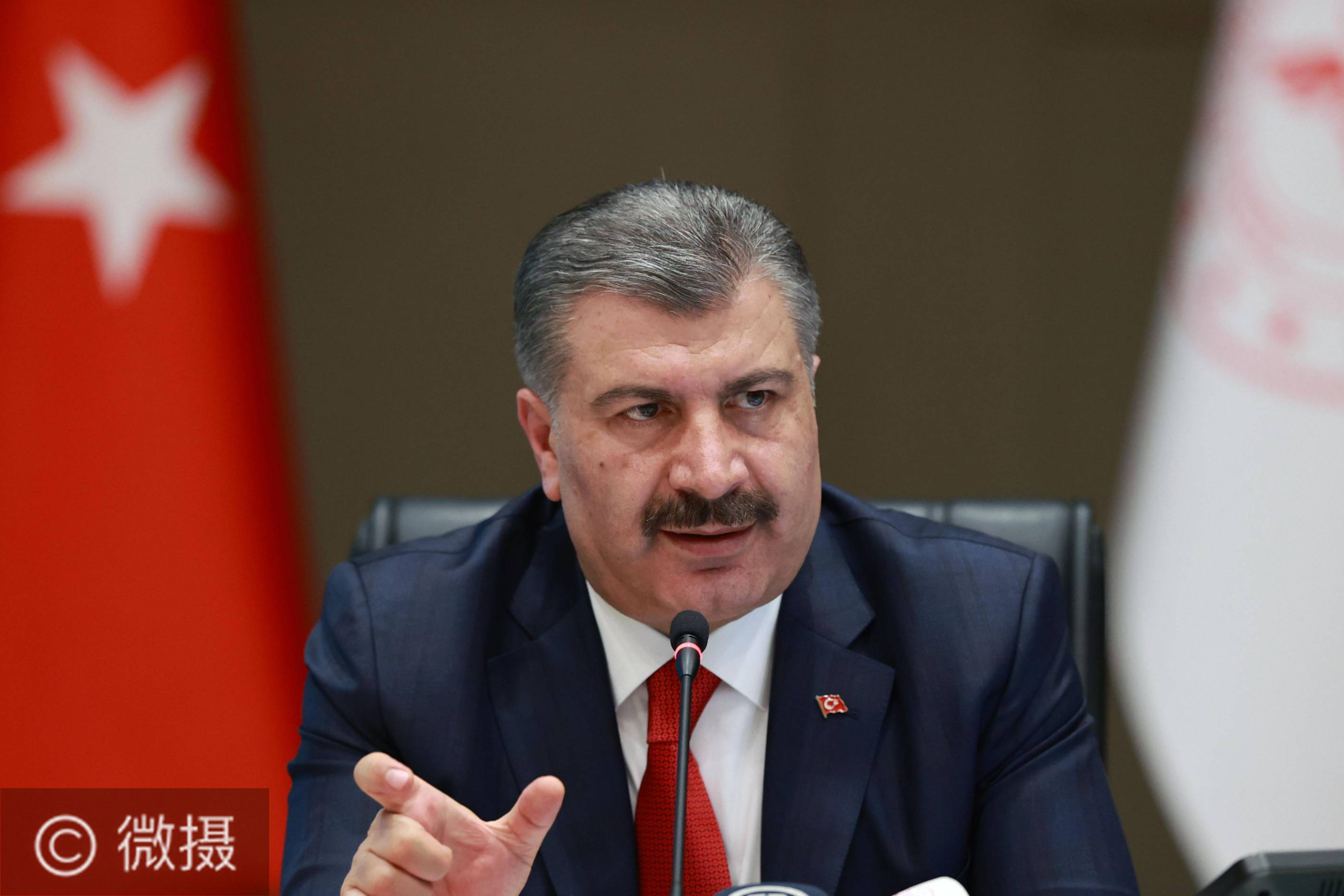 6月3日,土耳其卫生部长科贾在首都安卡拉出席疫情通报会。土耳其卫生部3日公布的新冠疫情数据显示,该国新增确诊病例867例,累计确诊166422例;新增死亡病例24例,累计死亡4609例。土耳其已连续5天新增确诊病例数低于1000例。 新华社发(穆斯塔法·卡亚摄)