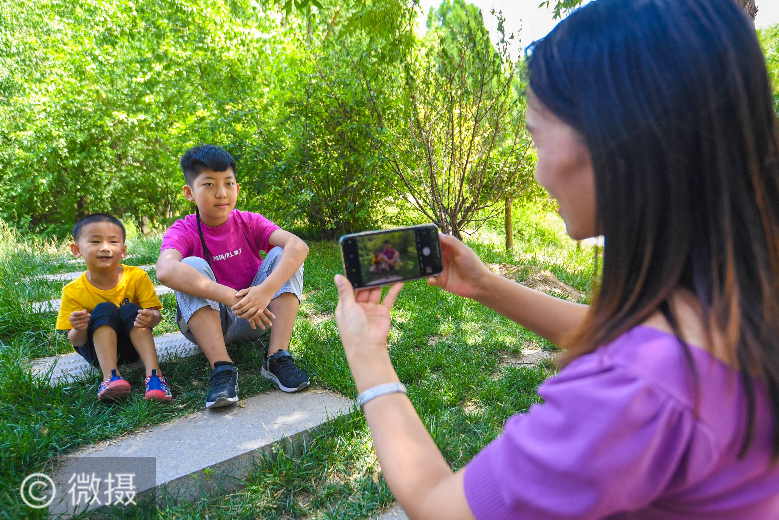 6月4日,人们在河北大城县带状公园内游玩。近年来,河北大城县以打造高品质宜居城市为工作目标,通过实施多彩廊道景观线、环城(镇)生态林带、森林郊野公园、十万亩生态林屏障、农田林网绿化等造林绿化工程,形成规模适度、林种合理、树种多样的生态绿化格局。 新华社记者李晓果摄