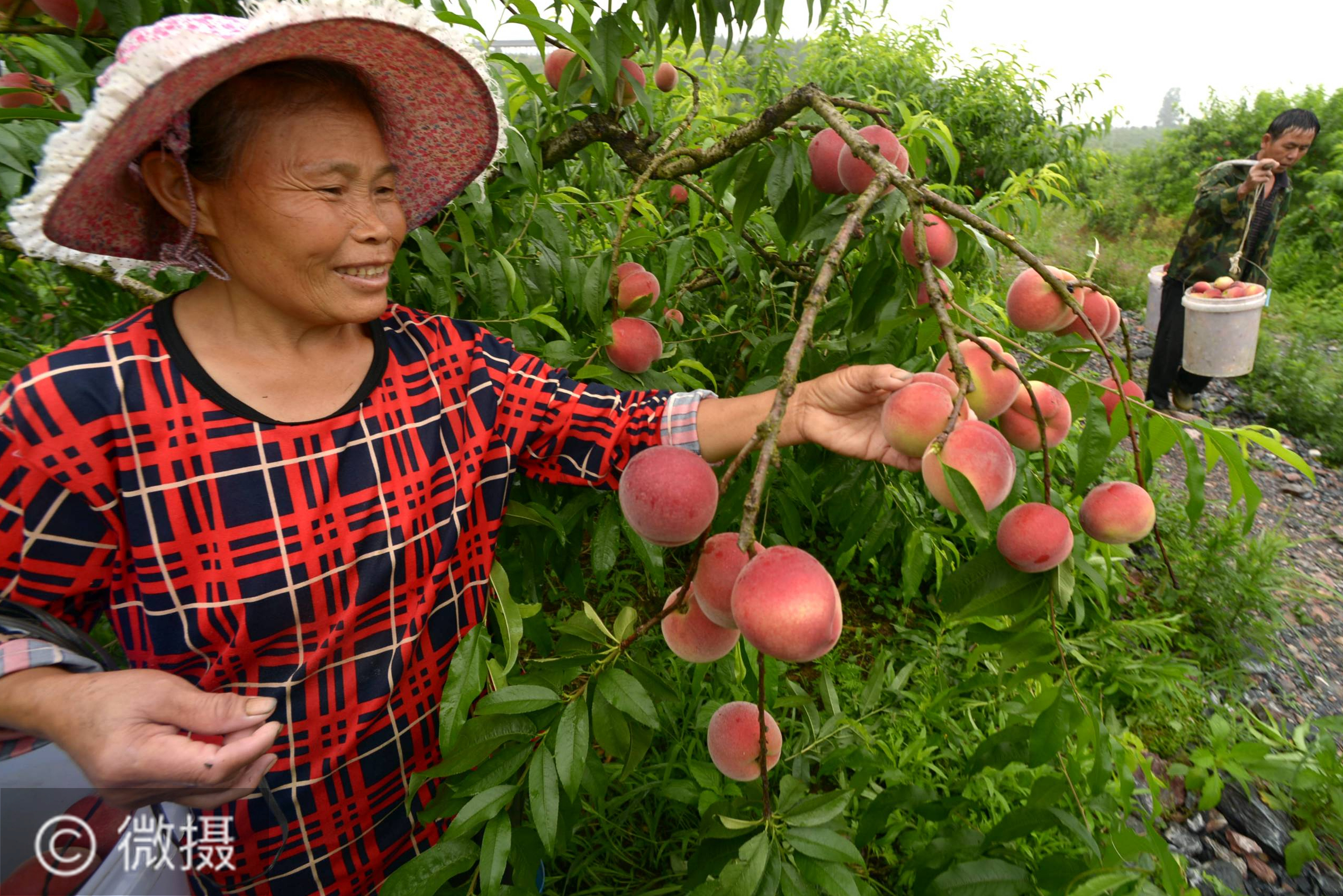 6月4日,果农在贵州省铜仁市玉屏侗族自治县朱家场镇混寨村桃园基地采收水蜜桃。连日来,贵州省铜仁市玉屏侗族自治县种植的水蜜桃迎来收获季,果农们采摘、装运、销售水蜜桃供应市场,一派丰收繁忙景象。新华社记者 杨楹 摄