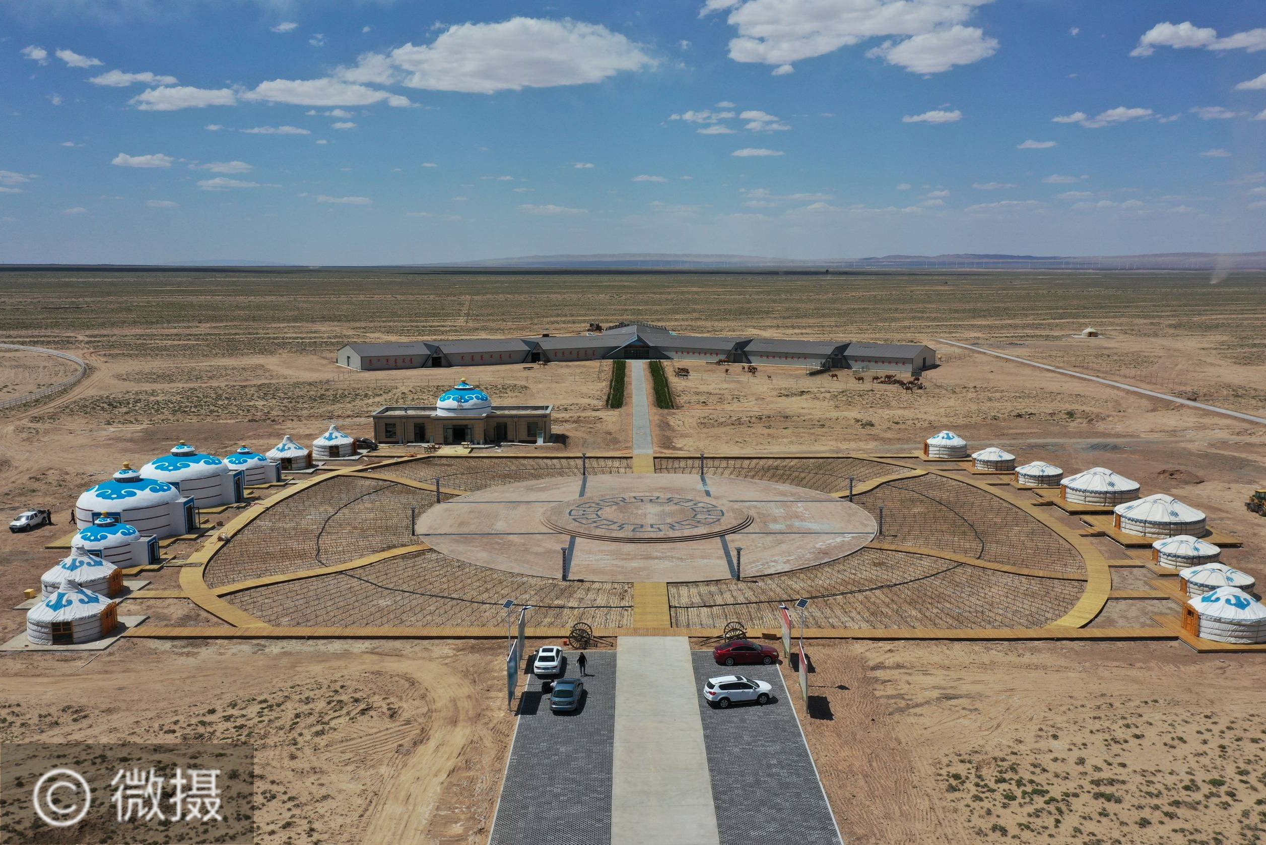 这是6月3日拍摄的阿拉善右旗那仁布拉格嘎查驼奶基地,该基地配套建设有旅游项目,可提供参观、餐饮等服务。近年来,内蒙古自治区阿拉善右旗立足本土实际,充分挖掘骆驼资源优势,出台驼圈建设补贴、骆驼保险补贴、驼奶收购补助等一系列扶持政策,鼓励发展骆驼产业,助力乡村振兴。新华社记者 徐钦