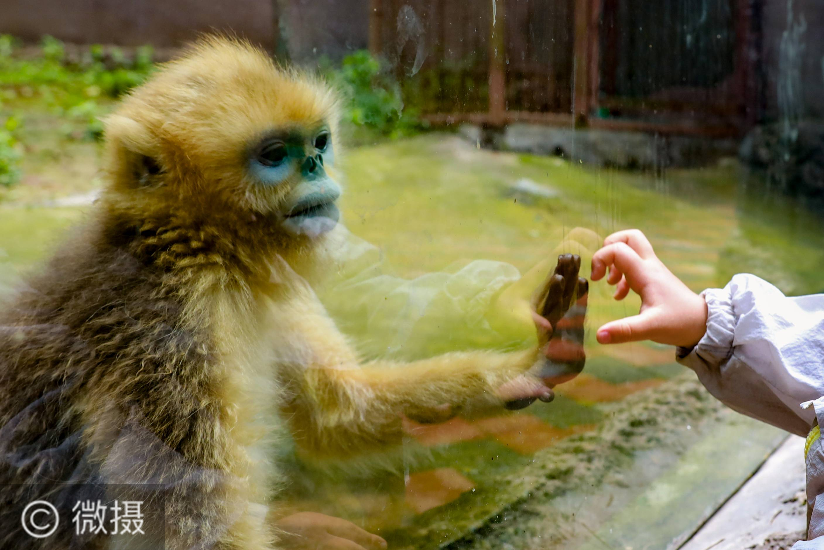 6月3日,小朋友在贵州森林野生动物园与金丝猴“握手”。近日,贵阳市所辖动物园采取预约购票、分时游览等措施,在做好疫情防控的前提下向市民游客开放。新华社记者 刘续 摄