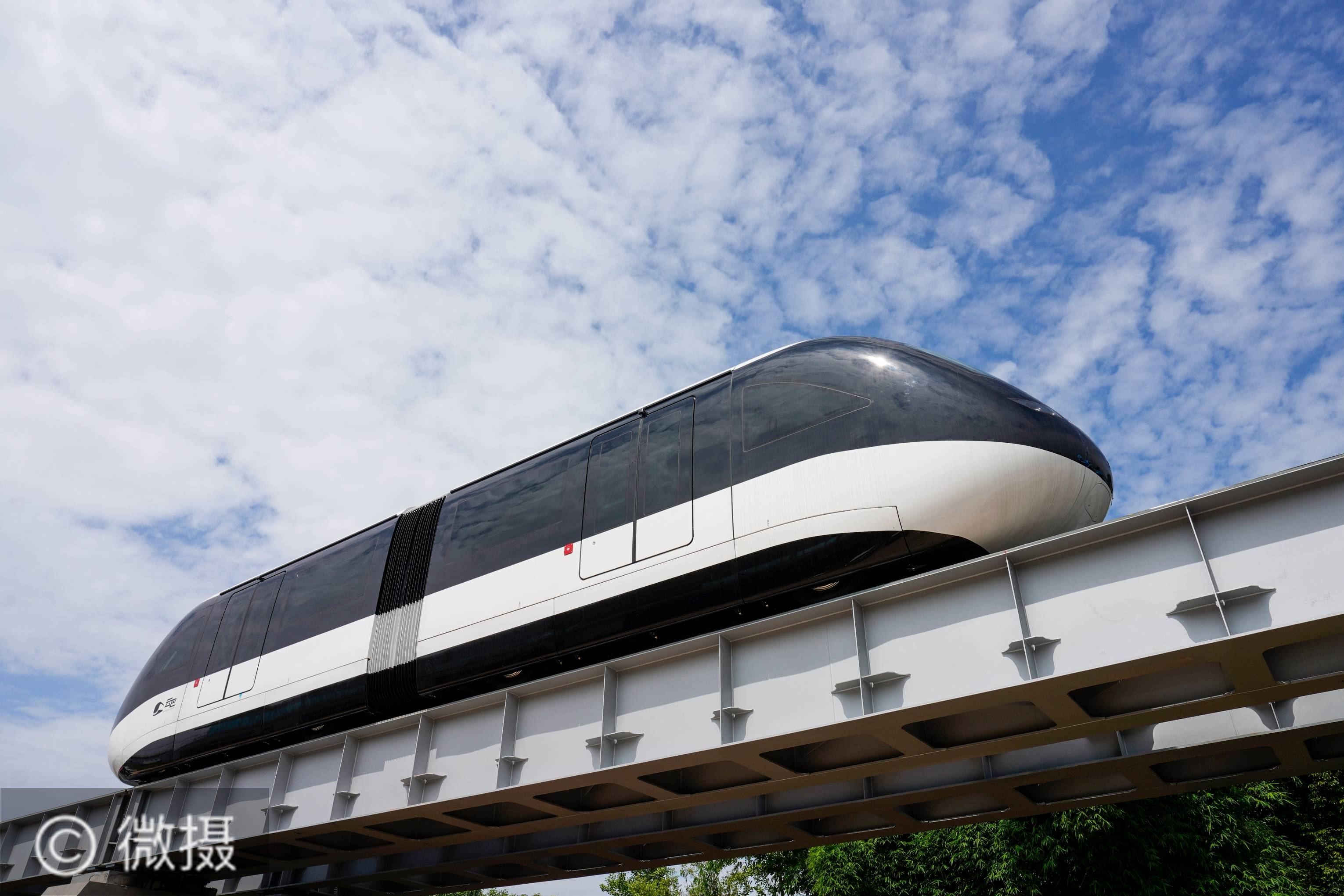 6月3日,一台“云巴”在专用运行轨道上进行调试。近日,重庆市首条“云巴”示范线项目在重庆璧山区正式亮相。此次发布的“云巴”采用电能驱动,具有转弯半径小、爬坡能力强、噪音低、安全性高、建设成本低、建造周期短等优势,能为乘客提供更智能、舒适、便捷的出行体验。新华社记者 刘潺 摄