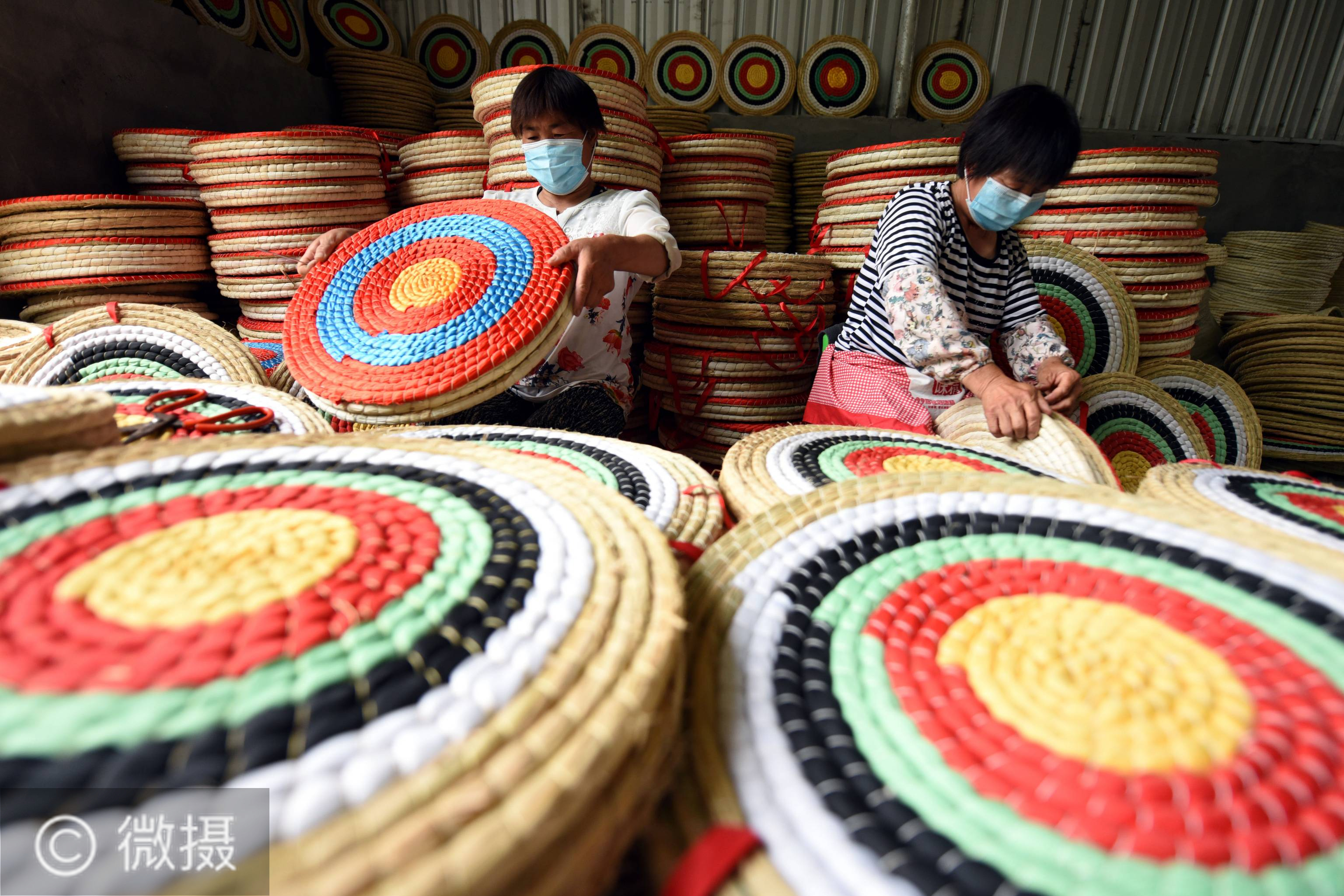 6月2日,山东省郯城县三强秸秆综合利用农民专业合作社的社员在加工出口的秸秆工艺品。麦收时节,山东省临沂市郯城县农民把收获的小麦等秸秆晾晒消毒后编制成精美的工艺品,既避免了秸秆焚烧造成的环境污染,又可增加收入。新华社发(房德华 摄)