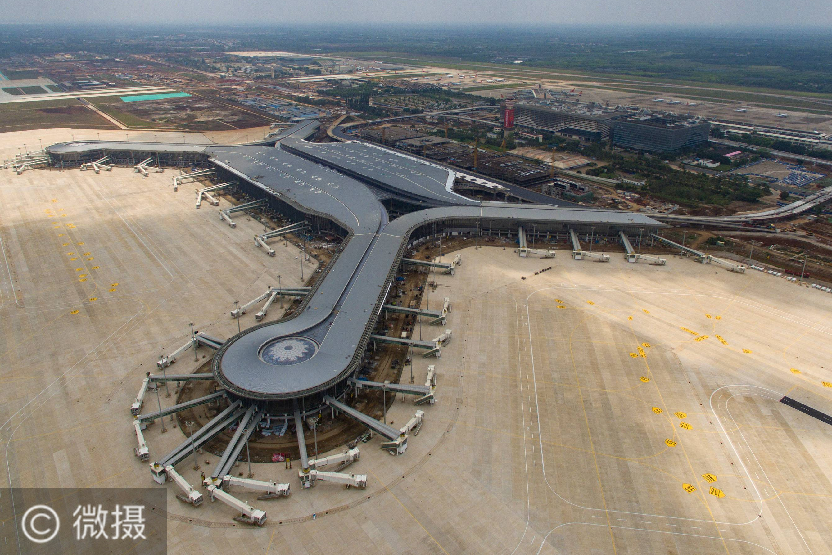 打造引领新时代对外开放的鲜明旗帜和重要开放门户——聚焦《海南自由贸易港建设总体方案》这是4月11日拍摄的建设中的海口美兰国际机场二期项目航站楼(无人机照片)。新华社记者 郭程 摄