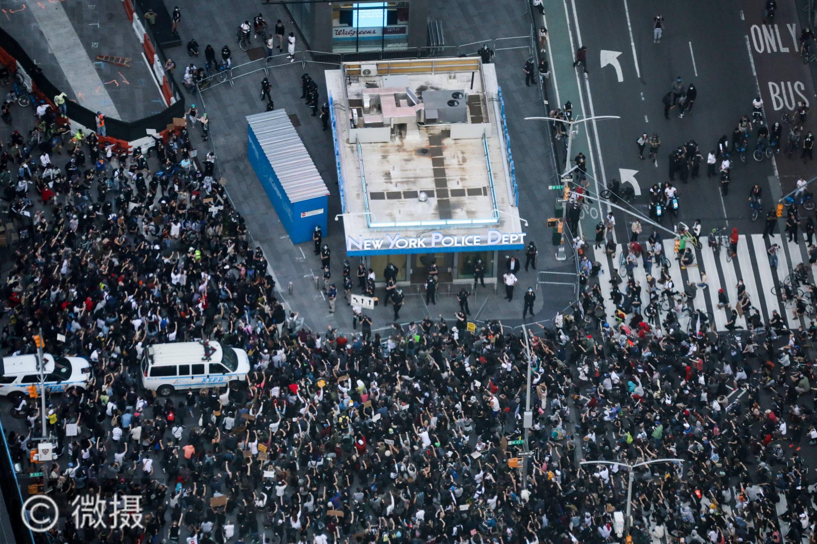 5月31日,在美国纽约时报广场,人们抗议警察暴力执法。由美国明尼苏达州白人警察执法致非洲裔男子死亡事件引发的抗议和骚乱5月31日仍在美国多地持续。在纽约市,抗议活动已持续4天。新华社记者 王迎 摄