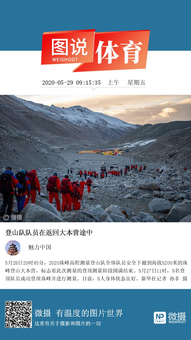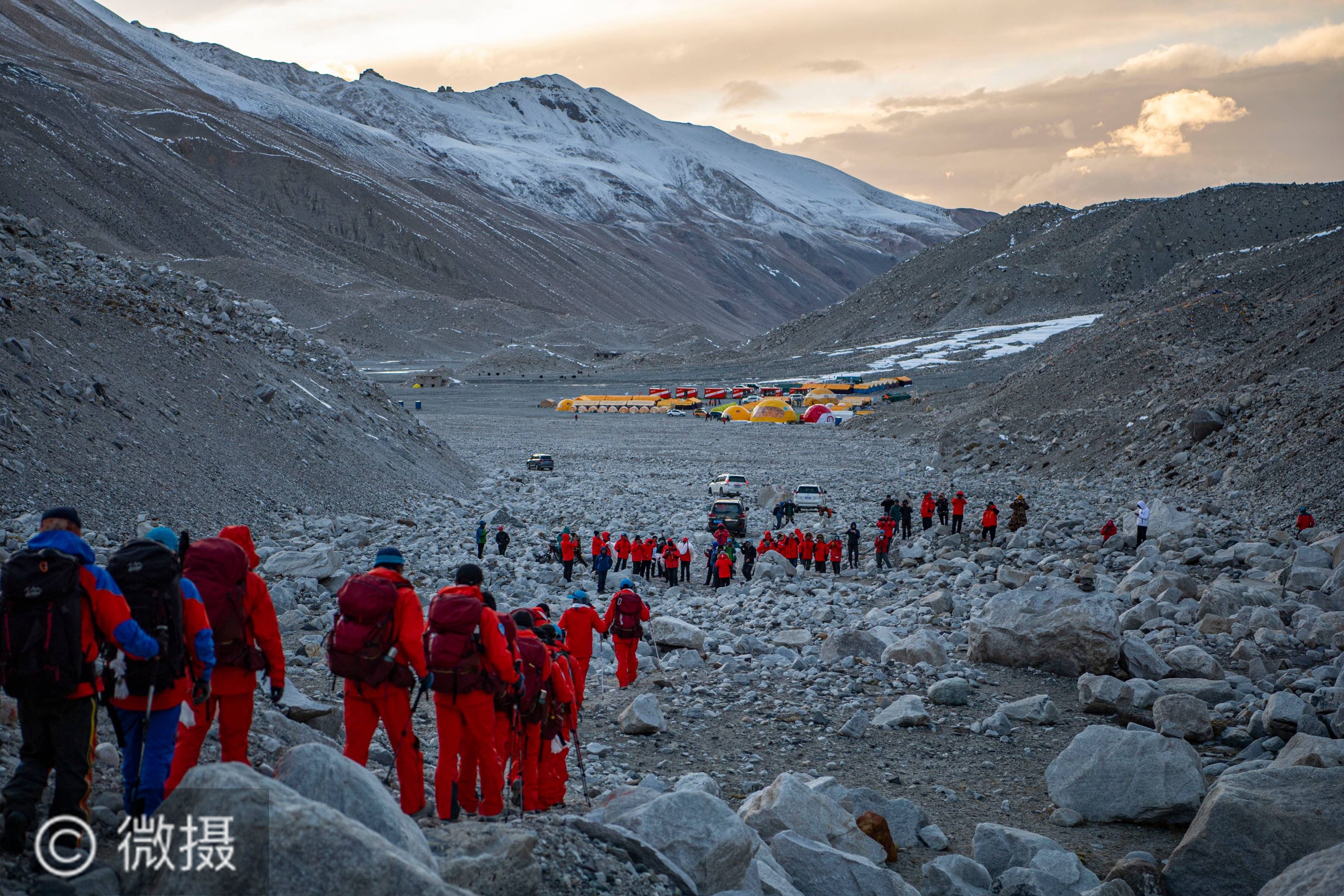 5月28日20时45分,2020珠峰高程测量登山队全体队员安全下撤到海拔5200米的珠峰登山大本营,标志着此次测量的登顶测量阶段圆满结束。5月27日11时,8名登顶队员成功登顶珠峰并进行测量。目前,8人身体状态良好。新华社记者 孙非 摄