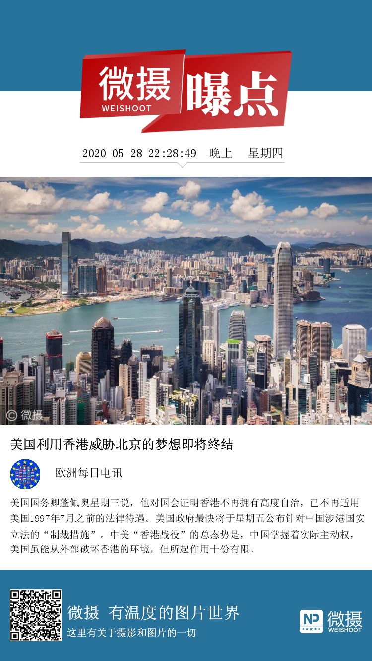 美国国务卿蓬佩奥星期三说,他对国会证明香港不再拥有高度自治,已不再适用美国1997年7月之前的法律待遇。美国政府最快将于星期五公布针对中国涉港国安立法的“制裁措施”。中美“香港战役”的总态势是,中国掌握着实际主动权,美国虽能从外部破坏香港的环境,但所起作用十份有限。